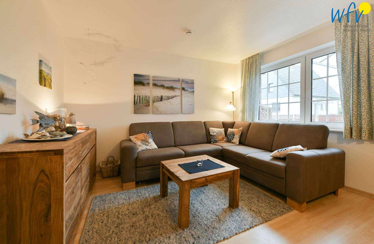 Ob nach dem sonnigen Strandtag, der ausgiebigen Fahrradtour oder der interessanten Wattwanderung - in dem gemütlichen Wohnraum mit Couchecke und Flachbildfernseher können Sie ausgiebig relaxen! Zu gemeinsamen Mahlzeiten oder lustigen Spielnachmittagen lädt ein Esstisch ein. Ihre Kinder dürfen sich gerne an den vorhandenen Spielen bedienen.