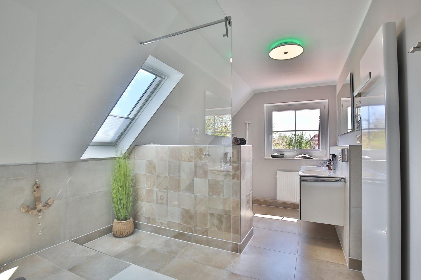 Ein geräumiges Badezimmer mit Badewanne und eines der vier Schlafzimmer befinden sich ebenfalls im Erdgeschoss.