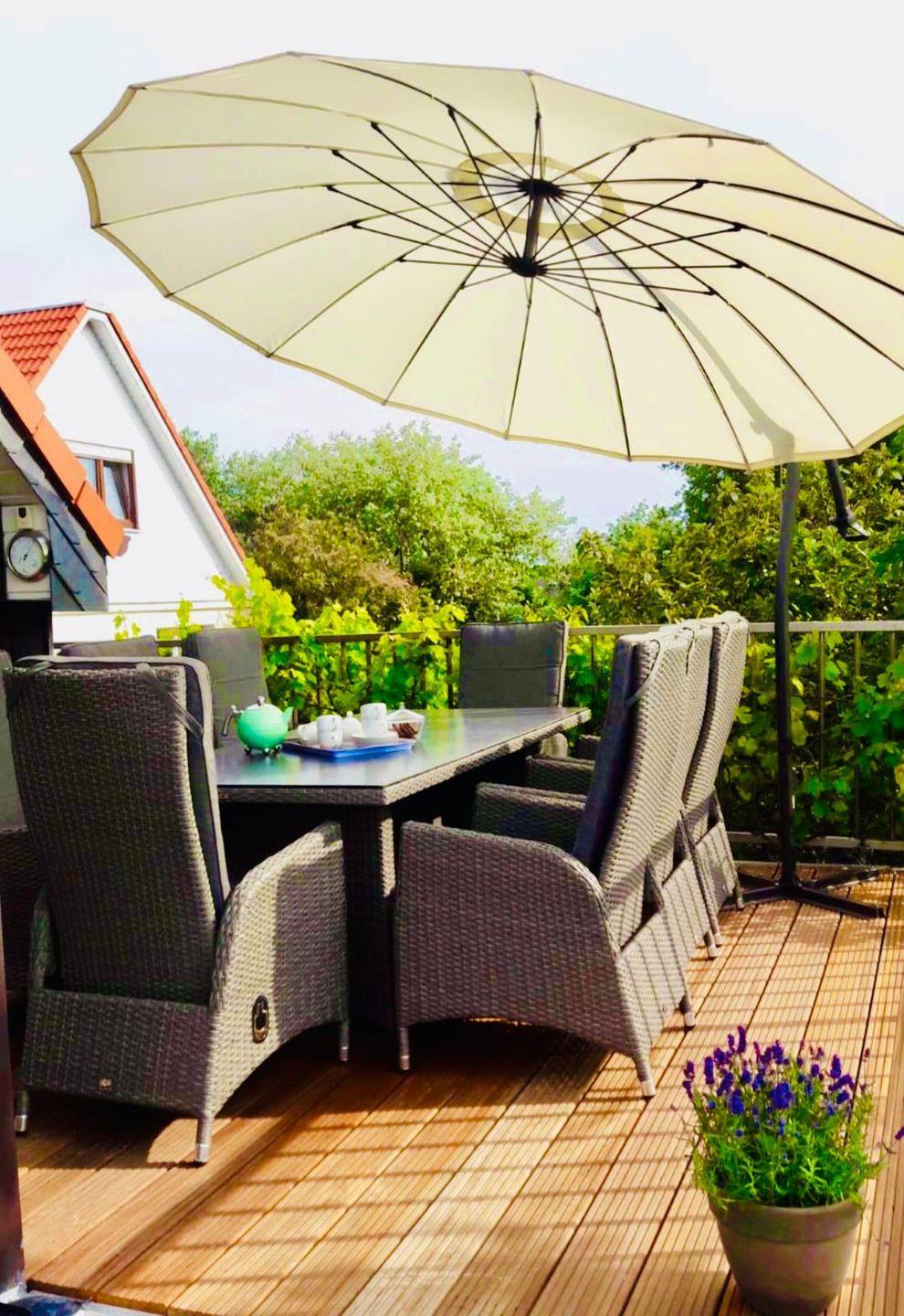 Bei gutem Wetter lohnt es sich, die möblierte Terrasse zu nutzen. Genießen Sie hier Ihre Auszeit an der frischen Luft. Beobachten Sie die unvergesslichen Sonnenuntergänge oder den klaren Sternenhimmel über Wangerooge.