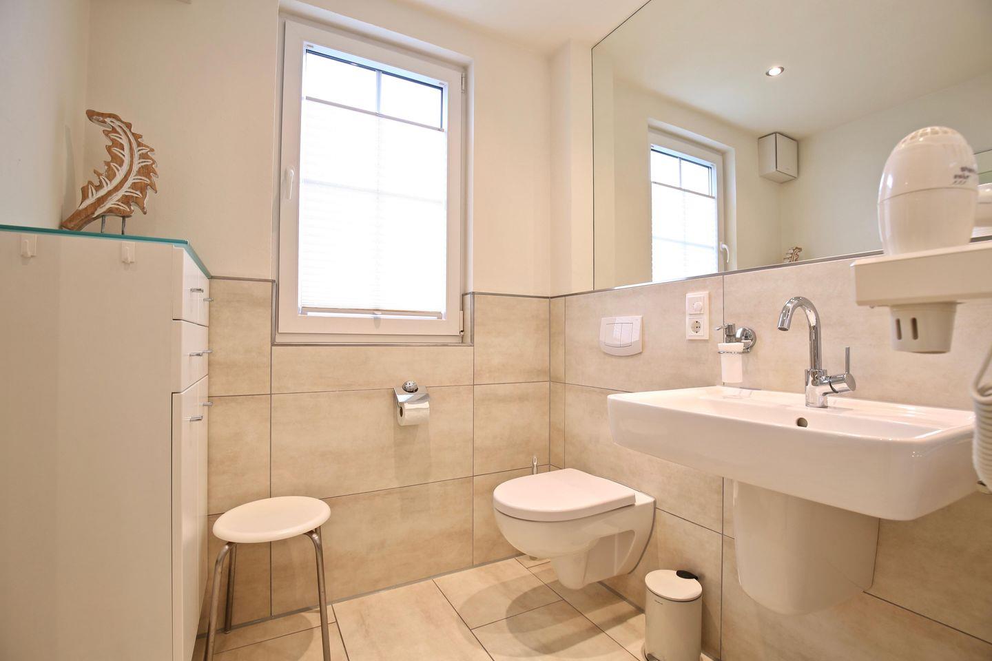 Im Badezimmer können sich dann nach einem geruhsamen Schlaf in der großen begehbaren Duschkabine unter der Regendusche erfrischen.