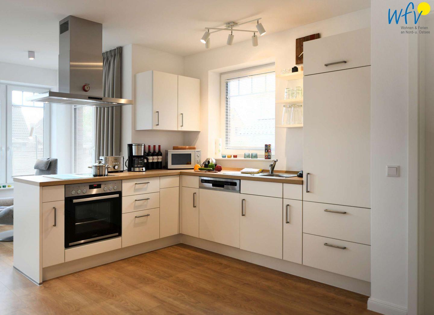 Auch an die Kochfans haben wir gedacht! Unsere moderne Einbauküche bietet Ihnen jeglichen Komfort, um leckere Gerichte zu zaubern. Ausgestattet ist sie u.a. mit Herd, Backofen, Spülmaschine und Mikrowelle sowie diversen Kleingeräten.