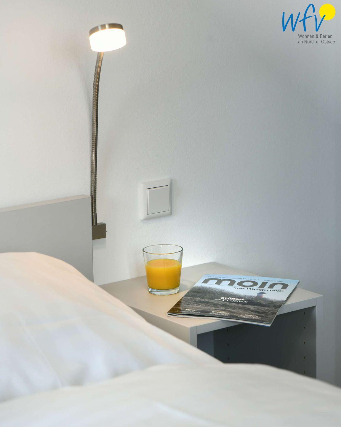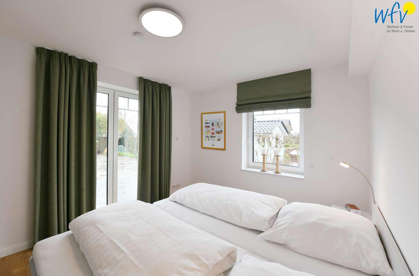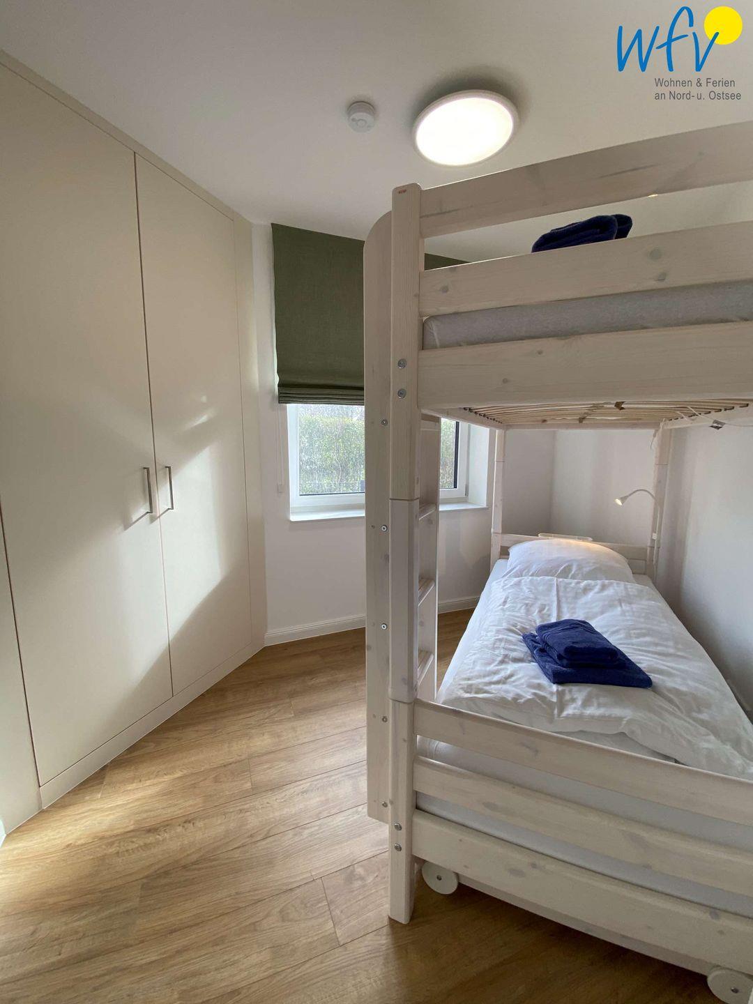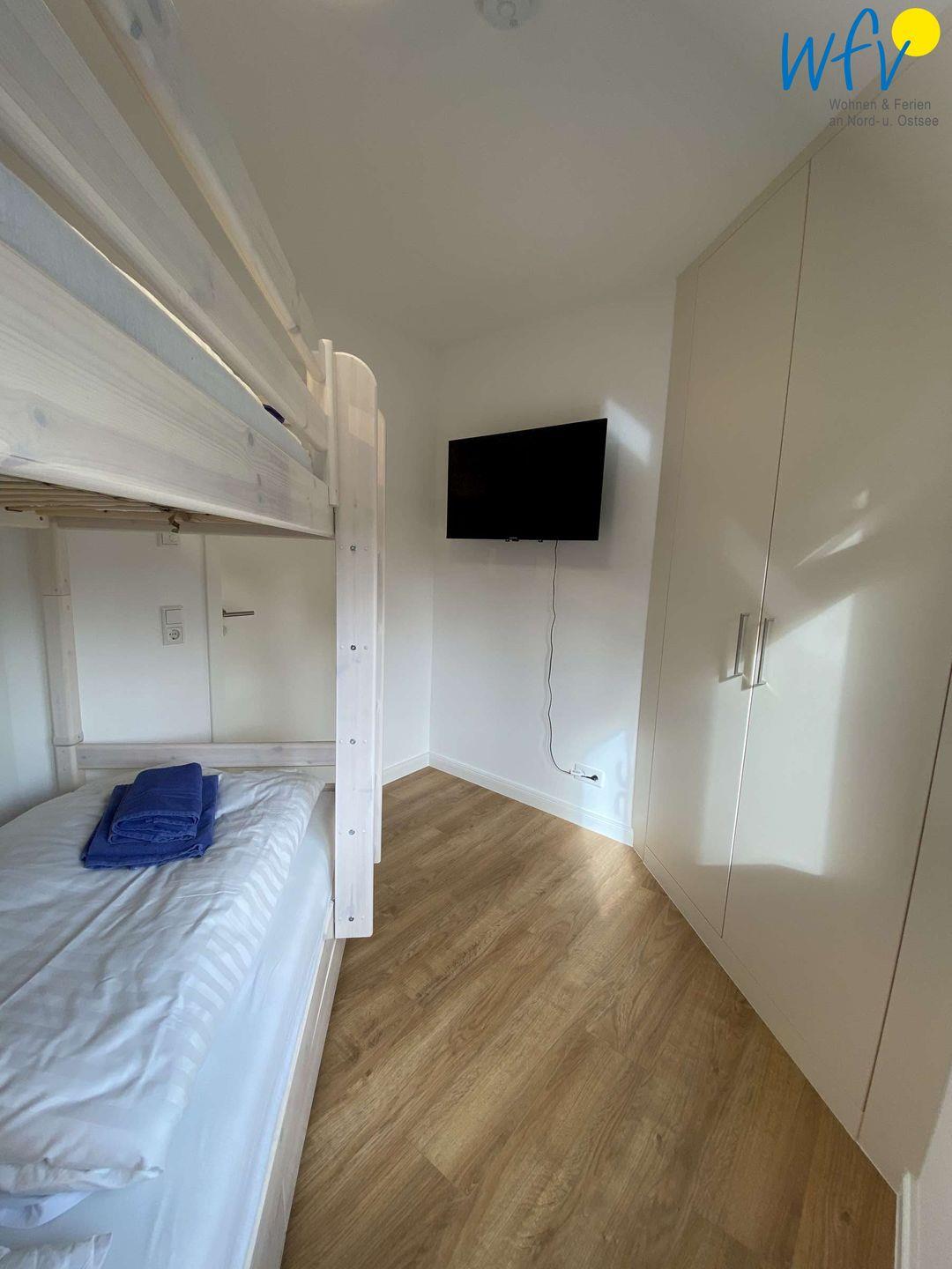 Wenn über der Nordsee der Sternenhimmel aufzieht, warten in den zwei separaten Schlafzimmern herrlich gemütliche Betten auf Sie! In dem Elternschlafzimmer befindet sich ein Doppelbett (1,80 m x 2 m), in dem Kinderschlafzimmer ein Etagenbett (1,10 m x 2,10 m) und ein TV.