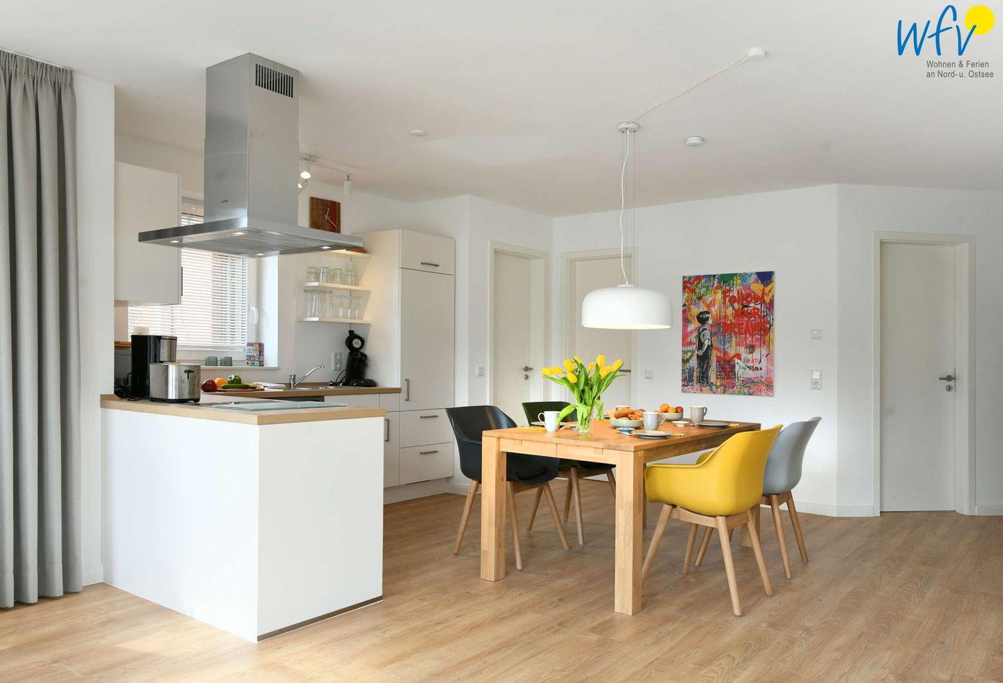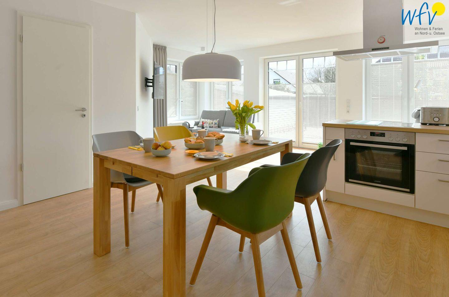 Dass Sie sich bei uns erholen, steht für uns an erster Stelle! Durch eine komfortable Einrichtung, helle Räume und liebevolle Accessoires haben wir für Sie eine Atmosphäre mit 100 % Wohlfühlgarantie geschaffen. Genießen nach dem Strandtag oder der Fahrradtour gemütliche Stunden zu Hause: Der große Esstisch lädt zu gemeinsamen Mahlzeiten oder lustigen Spieleabenden ein; die bequeme Couch und der gemütliche Sessel mit TV und CD-Player zu guten Filmen und zum Musik hören. Für wohlige Wärme an kühleren Tagen sorgt eine Fußbodenheizung.