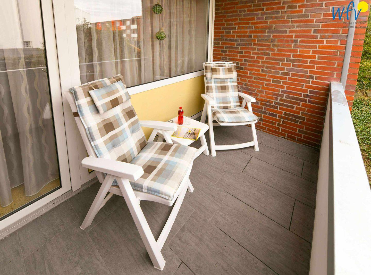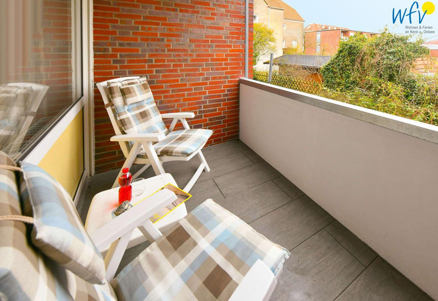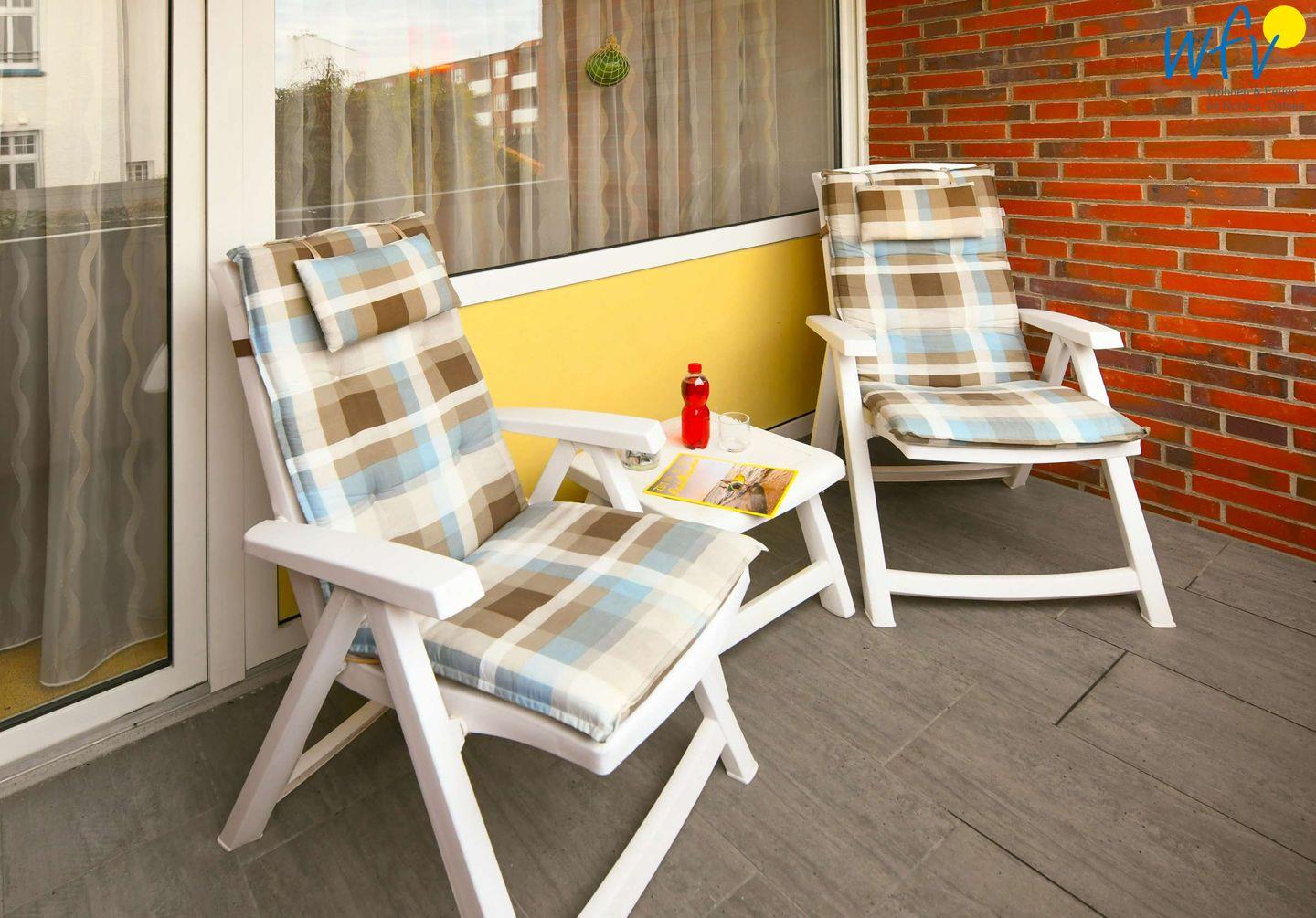 Auf dem überdachten Balkon genießen Sie pure Entspannung an der wohltuenden Nordseeluft. Mahlzeiten im Freien, gemütliche Lesestunden im Gartenstuhl oder romantische Sonnenuntergänge bei einem guten Glas Wein - das sind unvergessliche Urlaubsmomente!