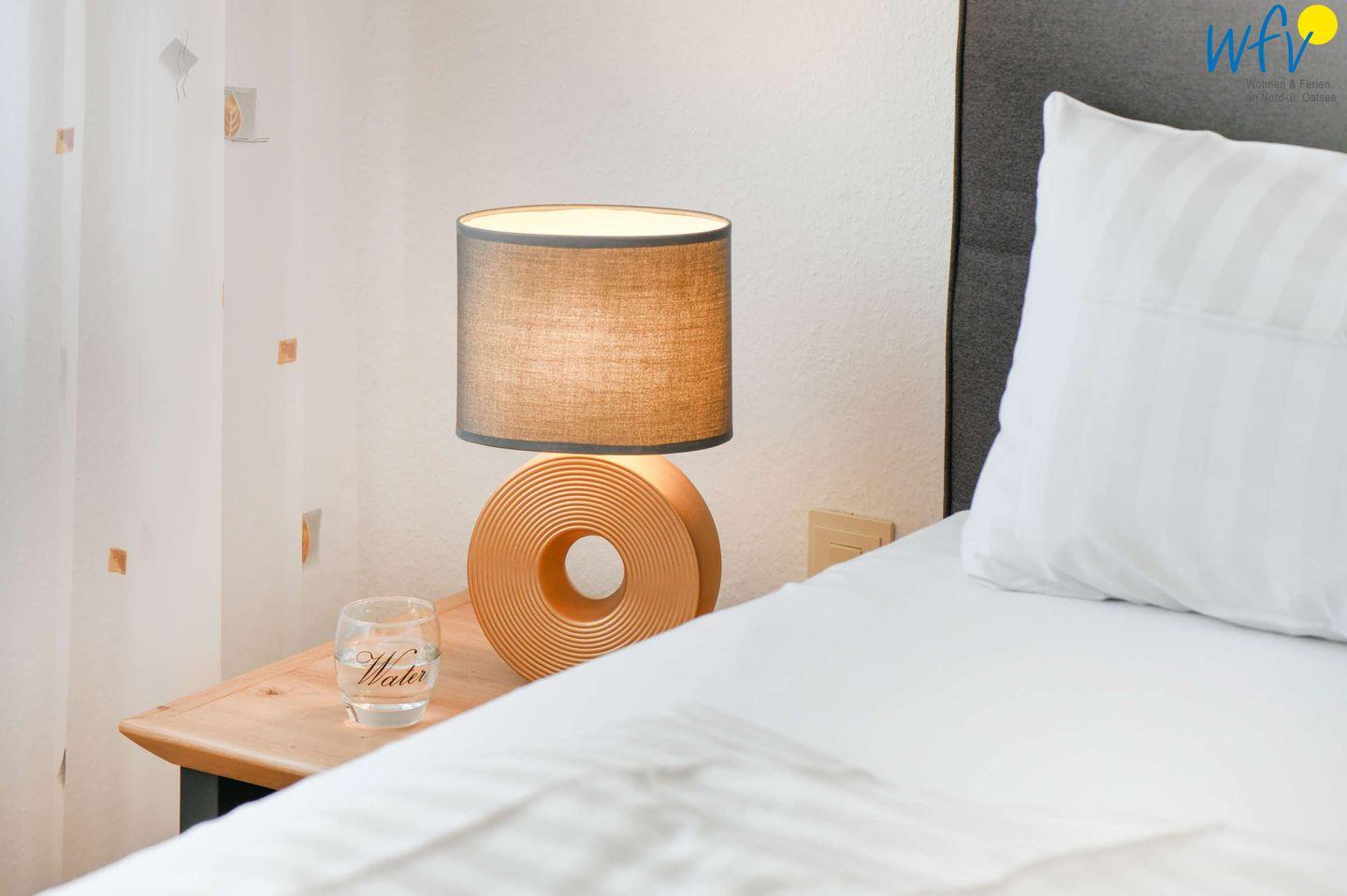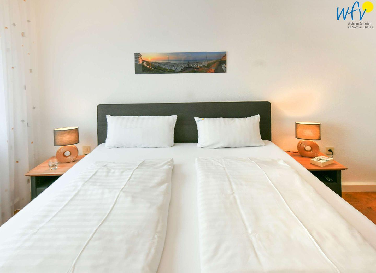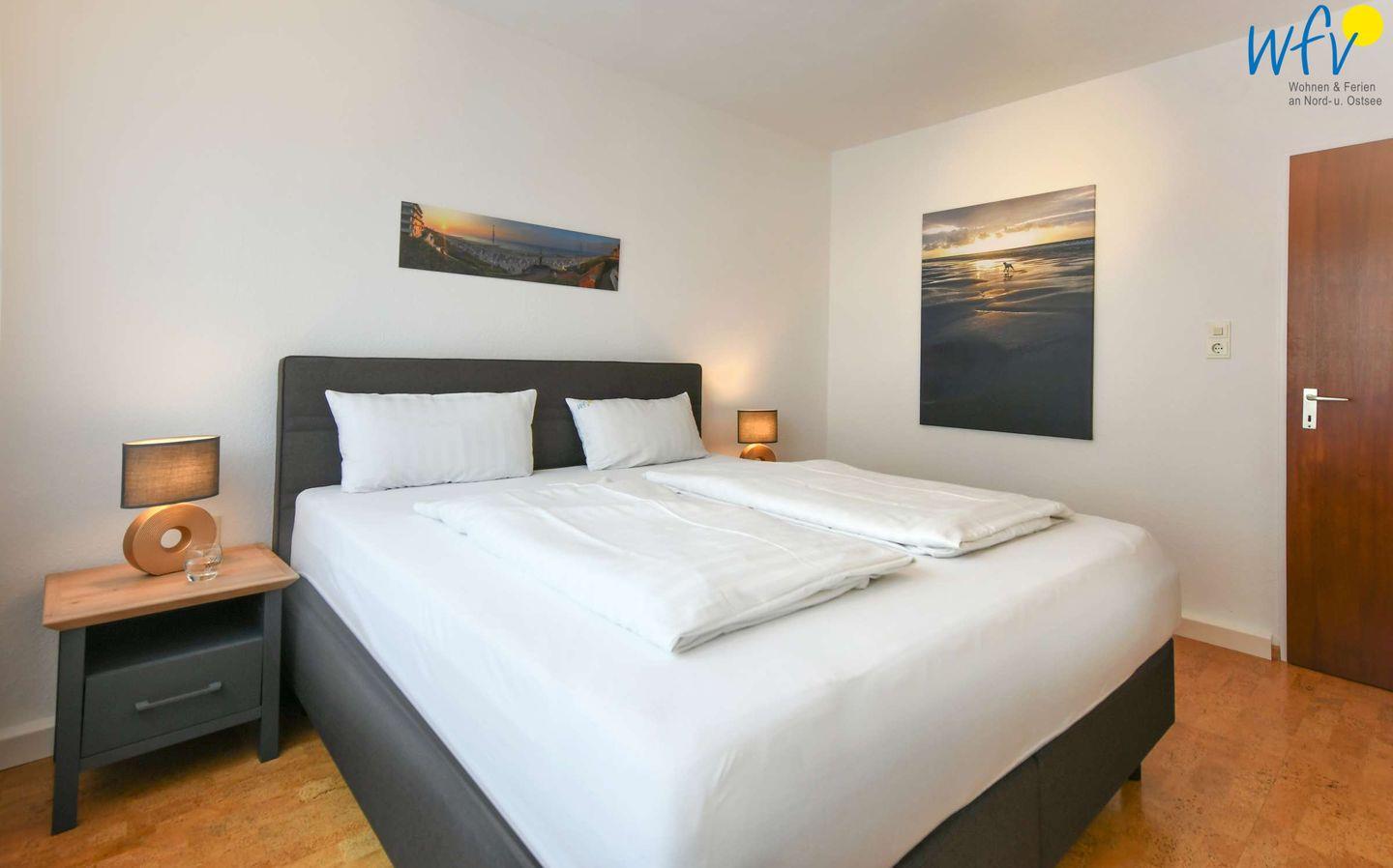 Herrlich ausschlafen können Sie in dem separaten Schlafzimmer mit Schlaraffia Boxspringbett (180 cm x 200 cm). Ihre Urlaubsgarderobe findet Platz in dem geräumigen Kleiderschrank. Ein weiteres TV sorgt für zusätzlichen Wohnkomfort.