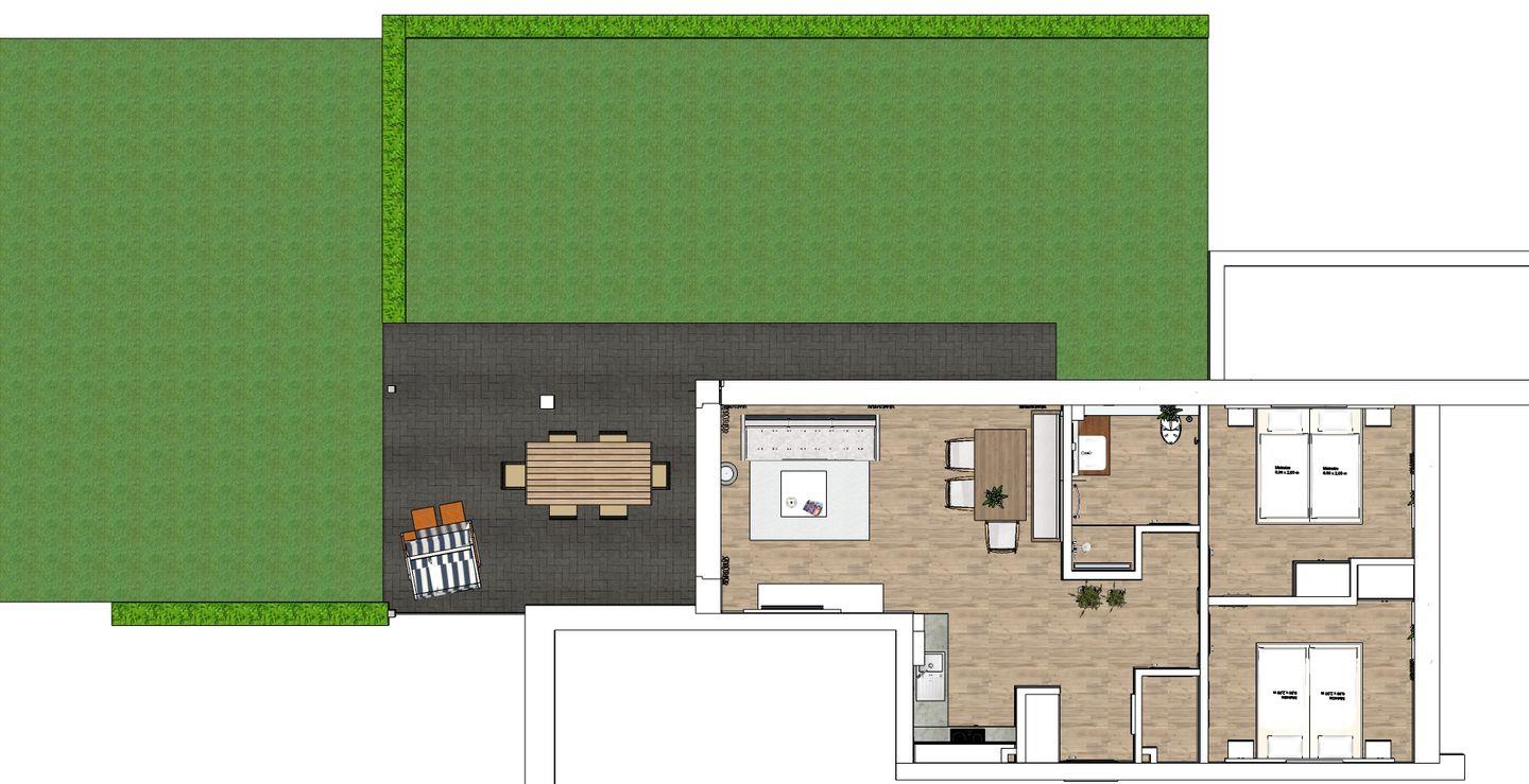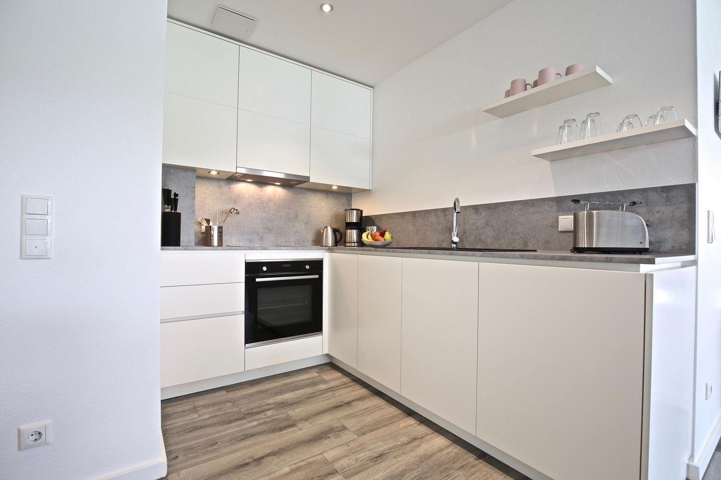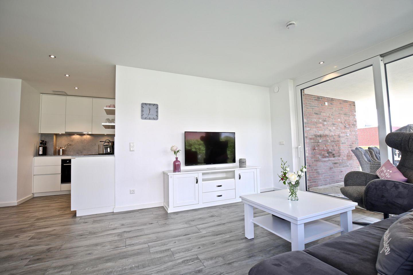 Vom Wohn-Essbereich aus haben Sie einen direkten Zugang zur hochwertig möblierten Terrasse. Eine moderne Einbauküche mit Backofen, Kühlschrank mit Gefrierfach und Spülmaschine ermöglicht Ihnen eine angenehme Selbstverpflegung. Ebenfalls steht ein Waschtrockner in der Wohnung zur Verfügung.