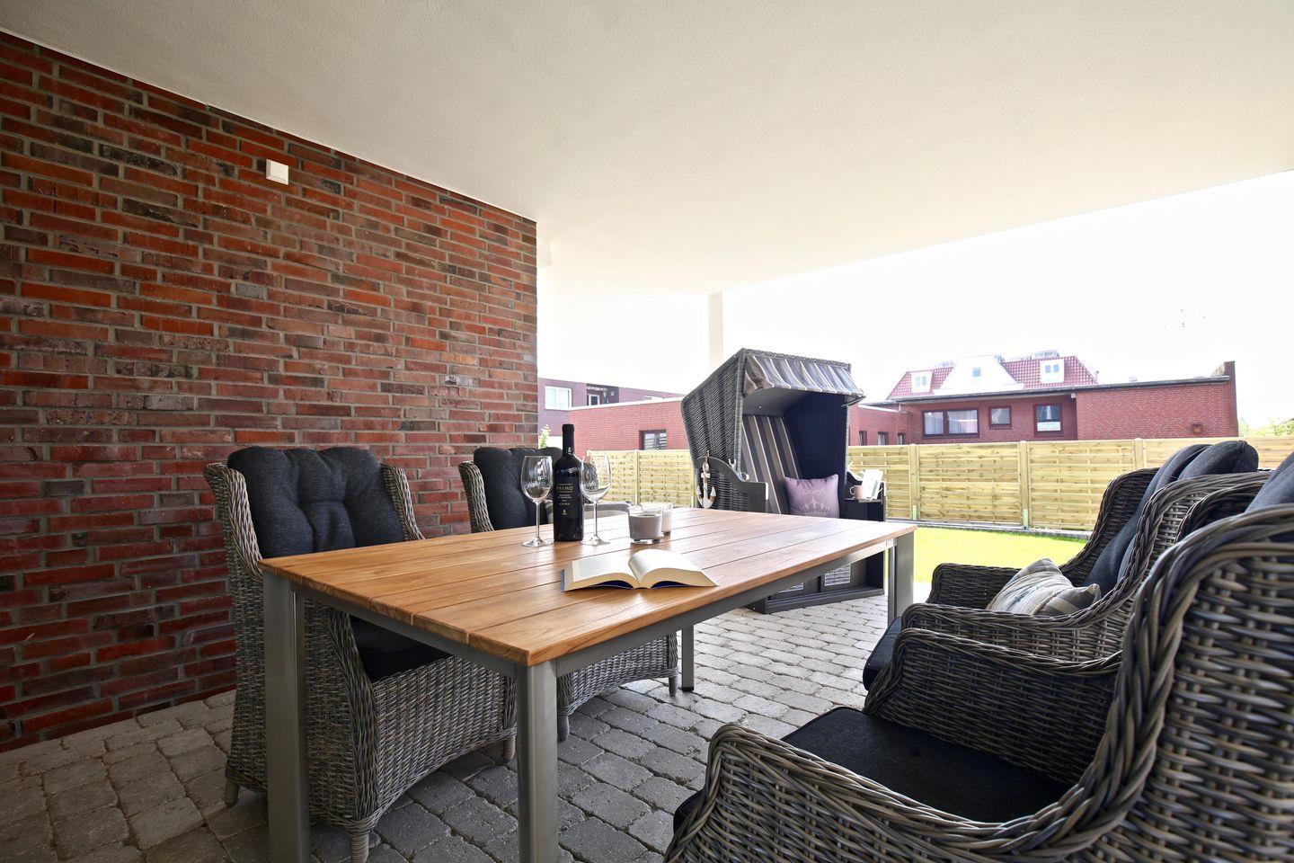Auf der großzügigen Terrasse können Sie die Abende im eigenen Strandkorb gemütlich ausklingen lassen.