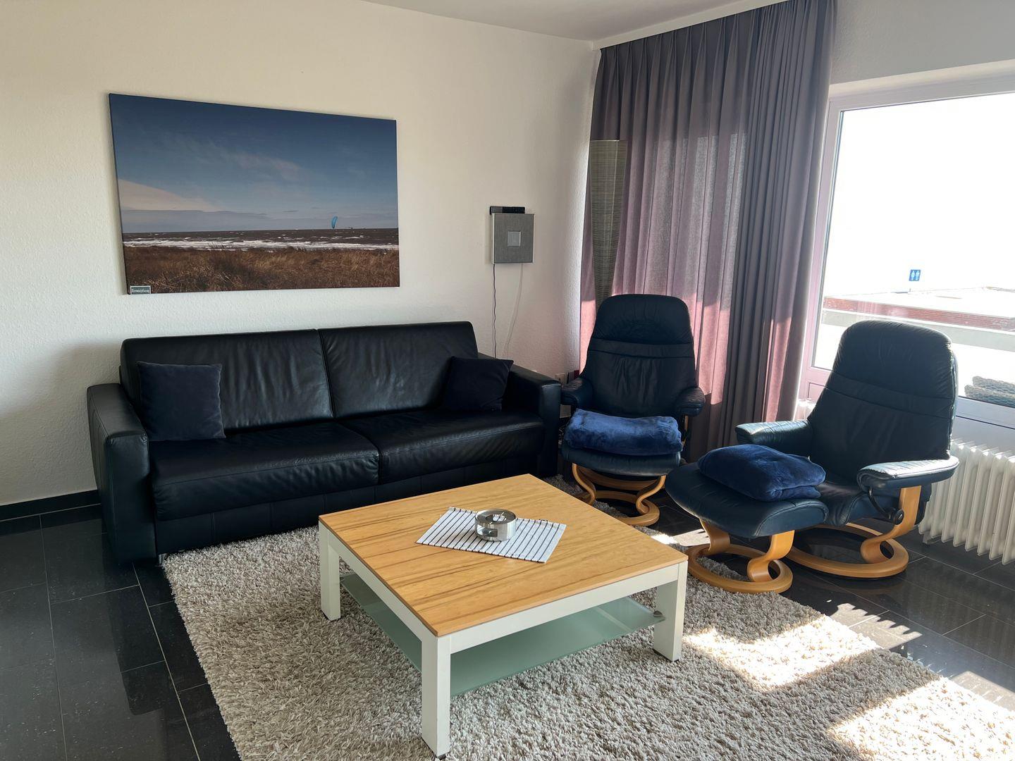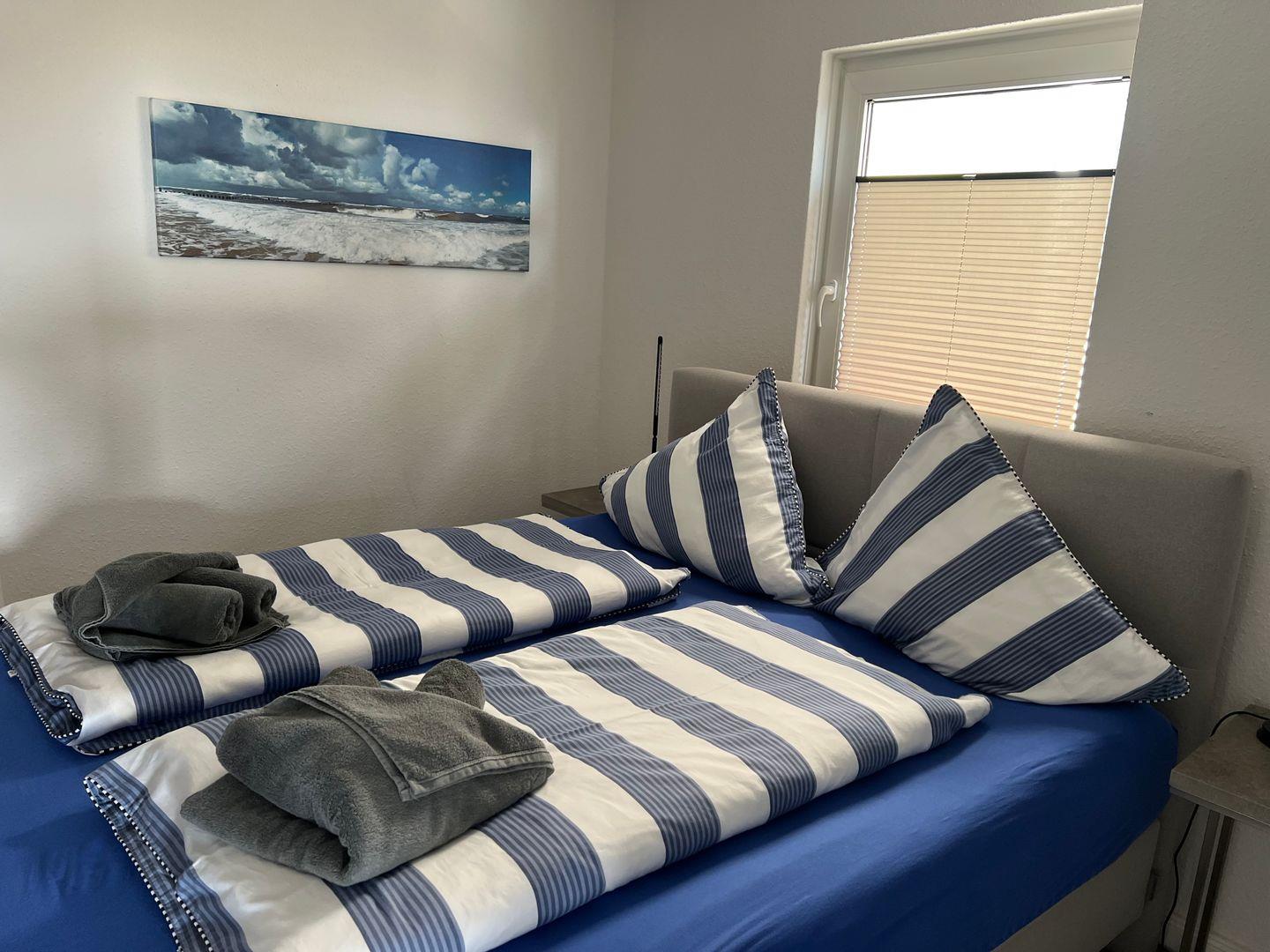 und Wattenmeer. Die Wohnung verfügt im Schlafzimmer über ein Boxspringbett und im Wohnzimmer über ein hochwertiges Bett, welches zu einem Sofa umgebaut werden kann.