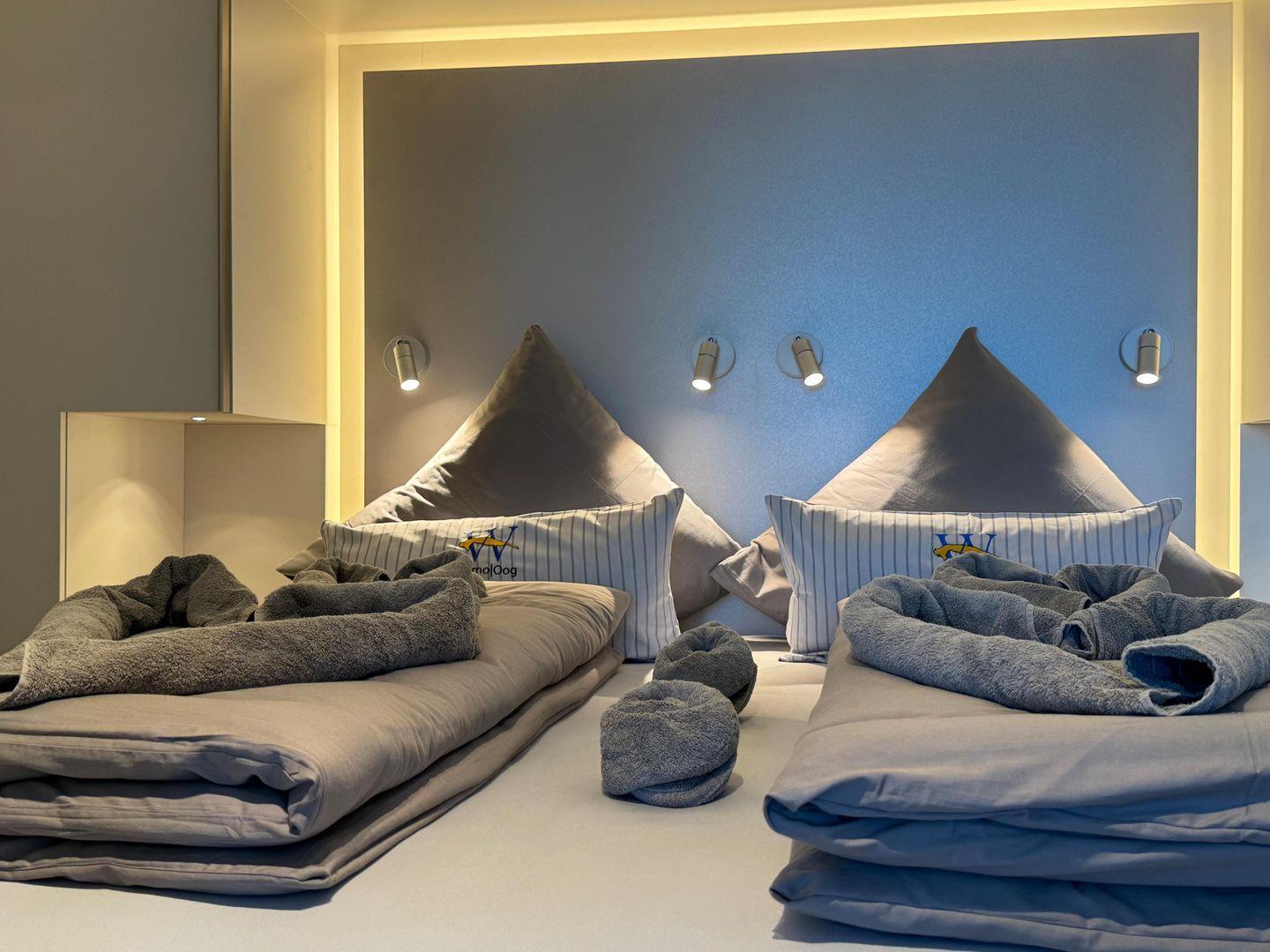 Der mondäne Saunabereich des Aparthotels mit Softsauna, finnischer Sauna,