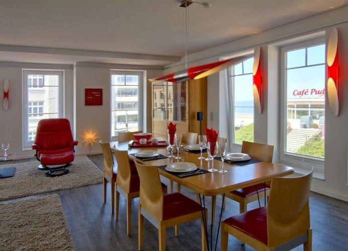 WoogeQueen – Der Name ist Programm: Königlich ist diese in unmittelbarer Strandnähe gelegene 112 m² große Pracht-Ferienwohnung mit direktem Meerblick