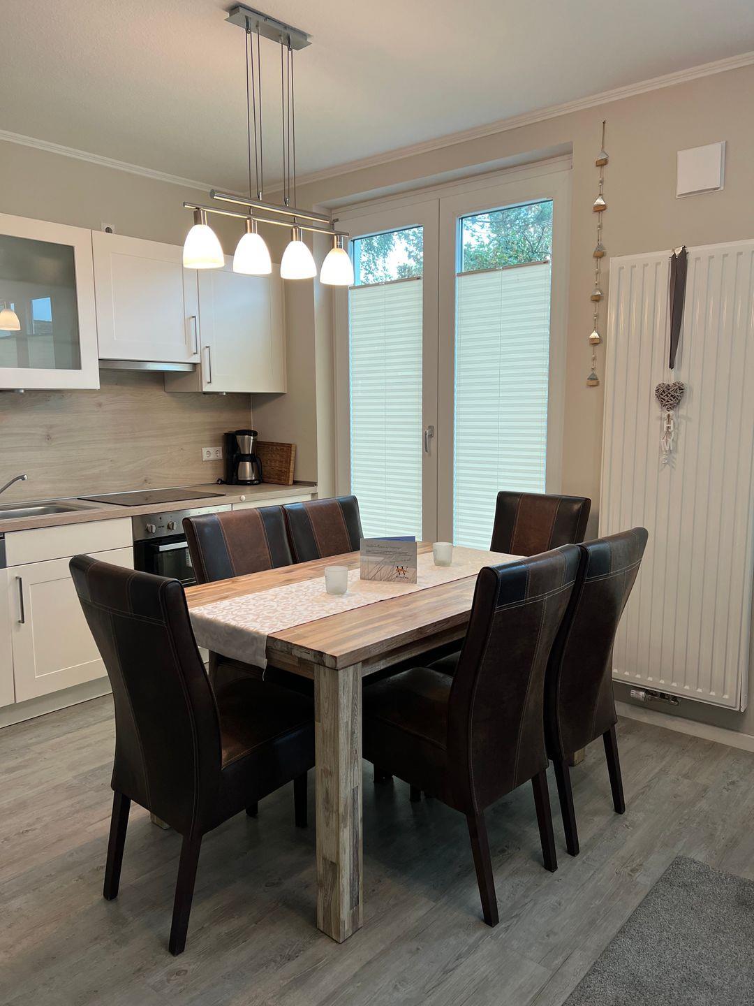 Essbereich mit offener Küche und angrenzender überdachter Loggia sowie 2