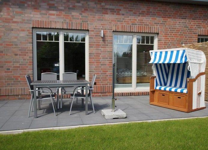 Garten mit der wunderschönen Terrasse. Hier können Sie sich es nach einem langen Spaziergang im Strandkorb gemütlich machen, ein Buch lesen und einen