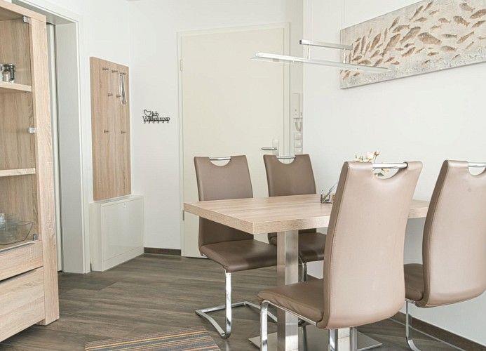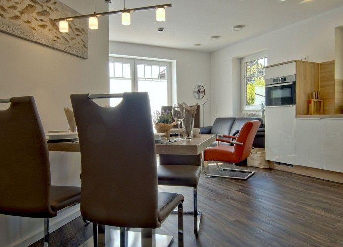 Inselparadies – die moderne, helle, lichtdurchflutete 50 m² Ferienwohnung, bietet Ihnen Gemütlichkeit und Komfort. Die im EG liegende 50 m² große Ferienwohnung ist ausgestattet mit einer hochwertigen Einbauküche. Der geschmackvoll eingerichtete Essbereich bietet Ihnen eine gemütliche Ecke.