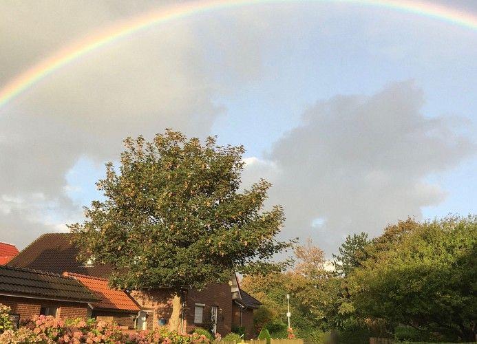 Riesige Hortensienhecken bilden den Blickfang auf das in friesischem Stil rot geklinkerte Zweifamilienhaus. Diese Ferienwohnung bietet 4 Erwachsenen und 1