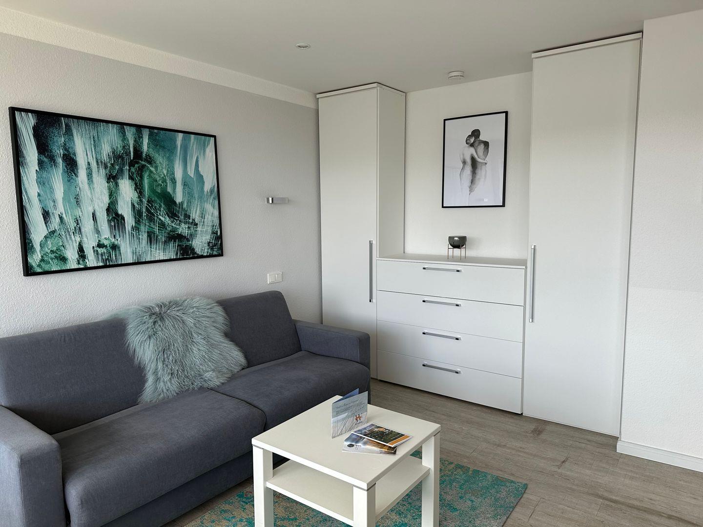 Die 38 m² große Ferienwohnung ist geschmackvoll, modern und sehr hochwertig eingerichtet. Vom Balkon haben Sie einen traumhaften Blick aufs Meer, den Hauptstrand und dem Cafe Pudding. Im Waschkeller des Hauses Monopol stehen Münzwaschmaschine und -trockner zur Verfügung.
