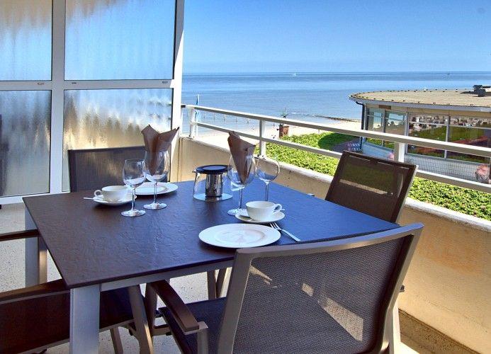 Bei Sonnenschein auf dem Balkon das Frühstück mit einem grandiosen Meerblick genießen! Die 38 m² große Ferienwohnung auf Wangerooge ist 2020 komplett
