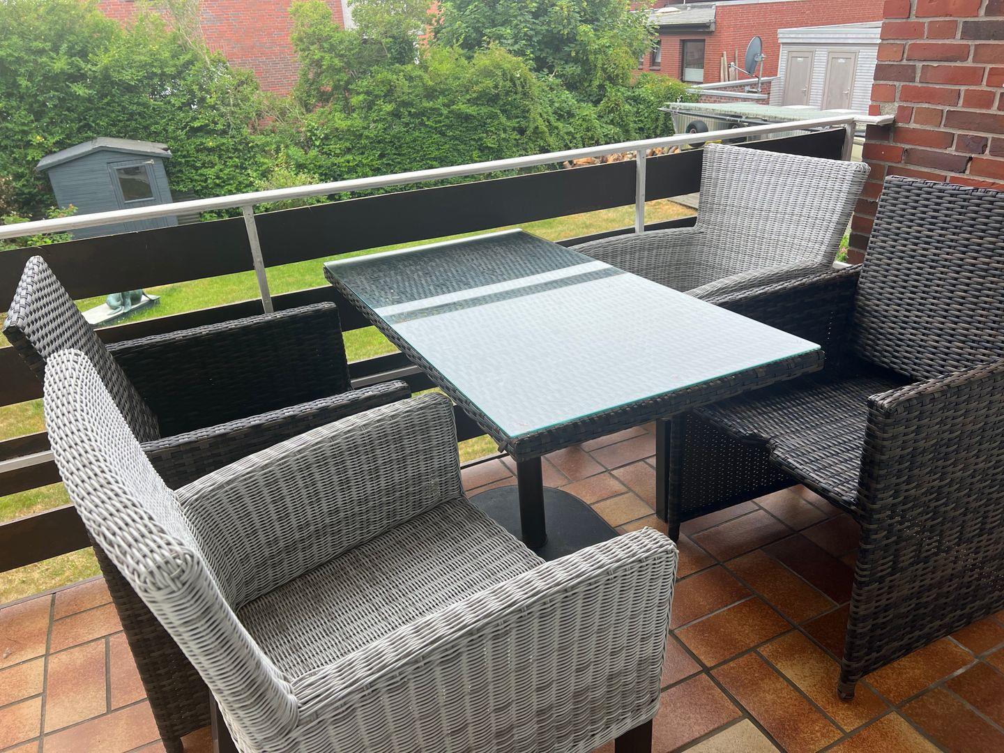 breiter Süd-Balkon gibt den Blick frei auf den hinter dem Hause eigenen Garten.