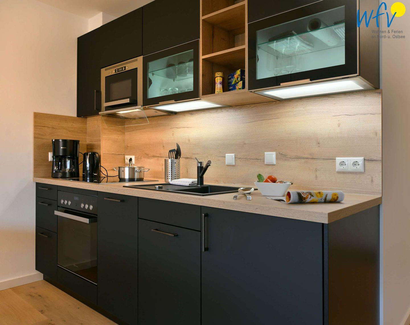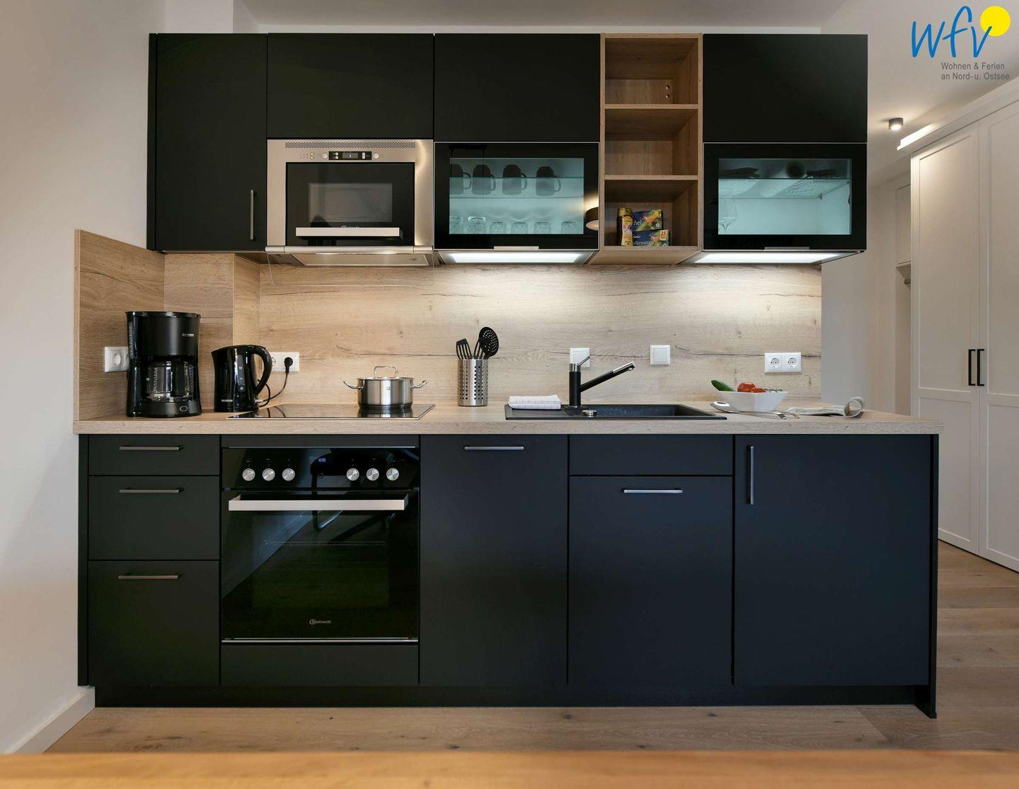 Natürlich haben wir auch an die Koch-Fans gedacht! In der modernen Küche mit Induktionskochfeld, Backofen und Mikrowelle wird jedes Gericht zum Festmahl. Den Abwasch übernimmt die Spülmaschine. Küche, Essbereich und Couchecke bilden ein geselliges Ensemble, sodass gemeinsame Mahlzeiten, Spieleabende oder Filmabende möglich sind.