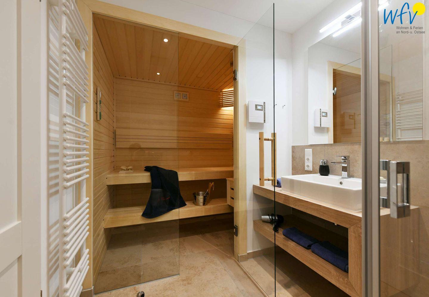 Ein besonderer Luxus dieser hochwertigen Ferienwohnung ist die Sauna! Ideal, um nach einem langen Strandspaziergang auszuspannen und die wohlige Wärme zu genießen.