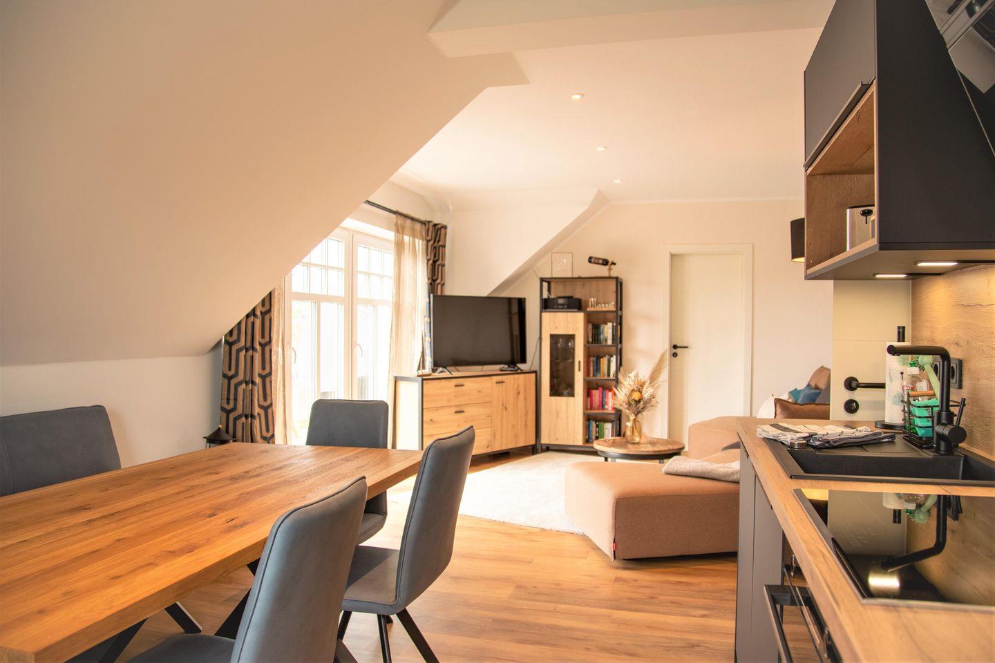 Unsere gemütlich und liebevoll eingerichtete ca. 70 qm große Ferienwohnung befindet sich im Dachgeschoss des Hauses mit Blick auf den „Alten Leuchtturm“ und den Bahnhof in Richtung mit toller Südausrichtung.