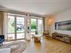 Im Wohnzimmer befindet sich auch die gemütliche Couchecke. Diese eignet sich vor allem bei kühlen Tagen für gemütliche Fernsehabende. Vom Wohnzimmer kommt man auch zur schön gestalteten Außenterrasse mit Sitzecke.