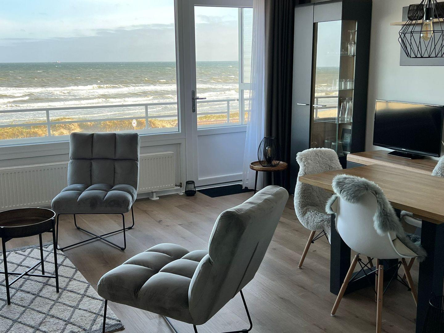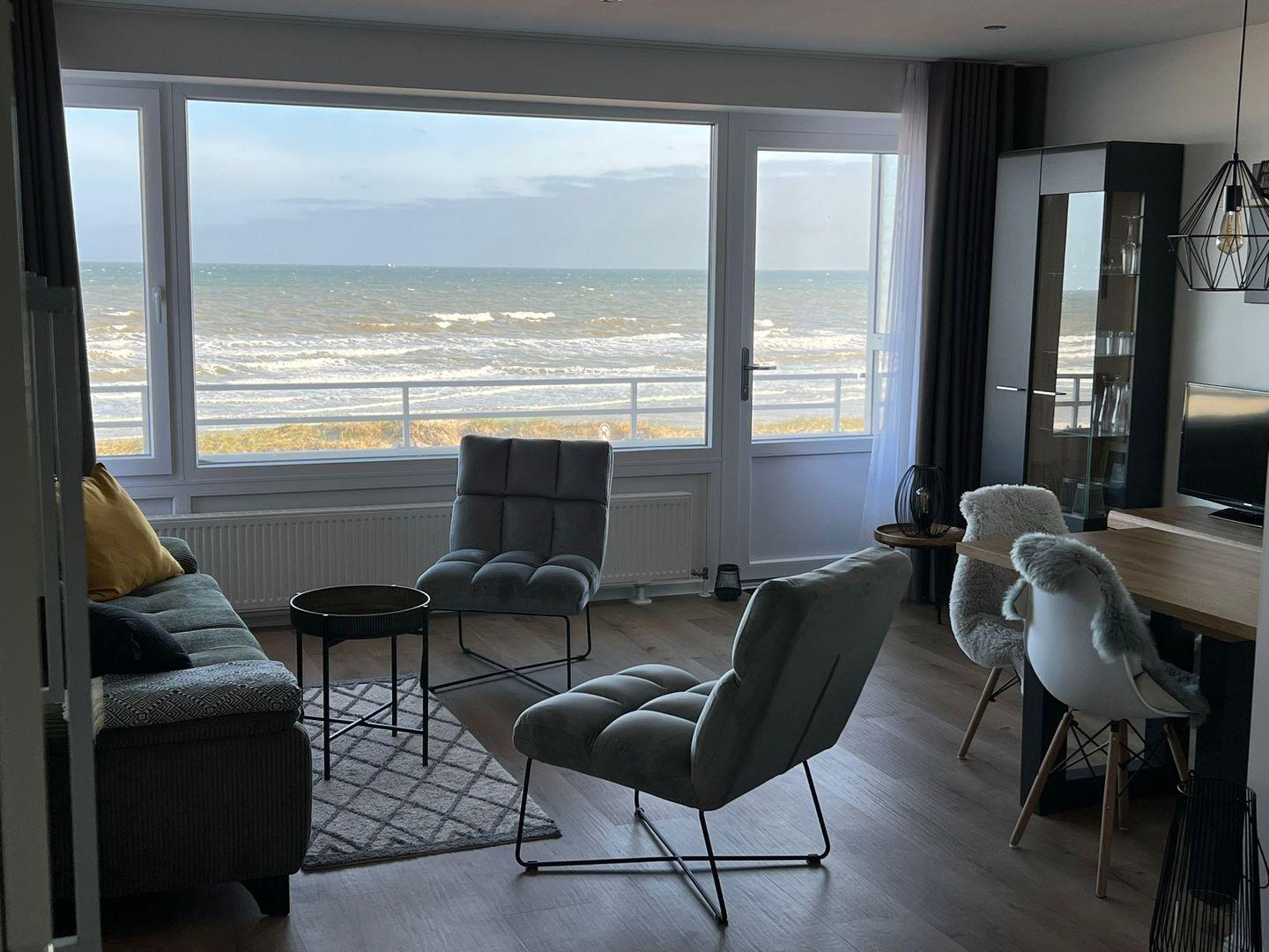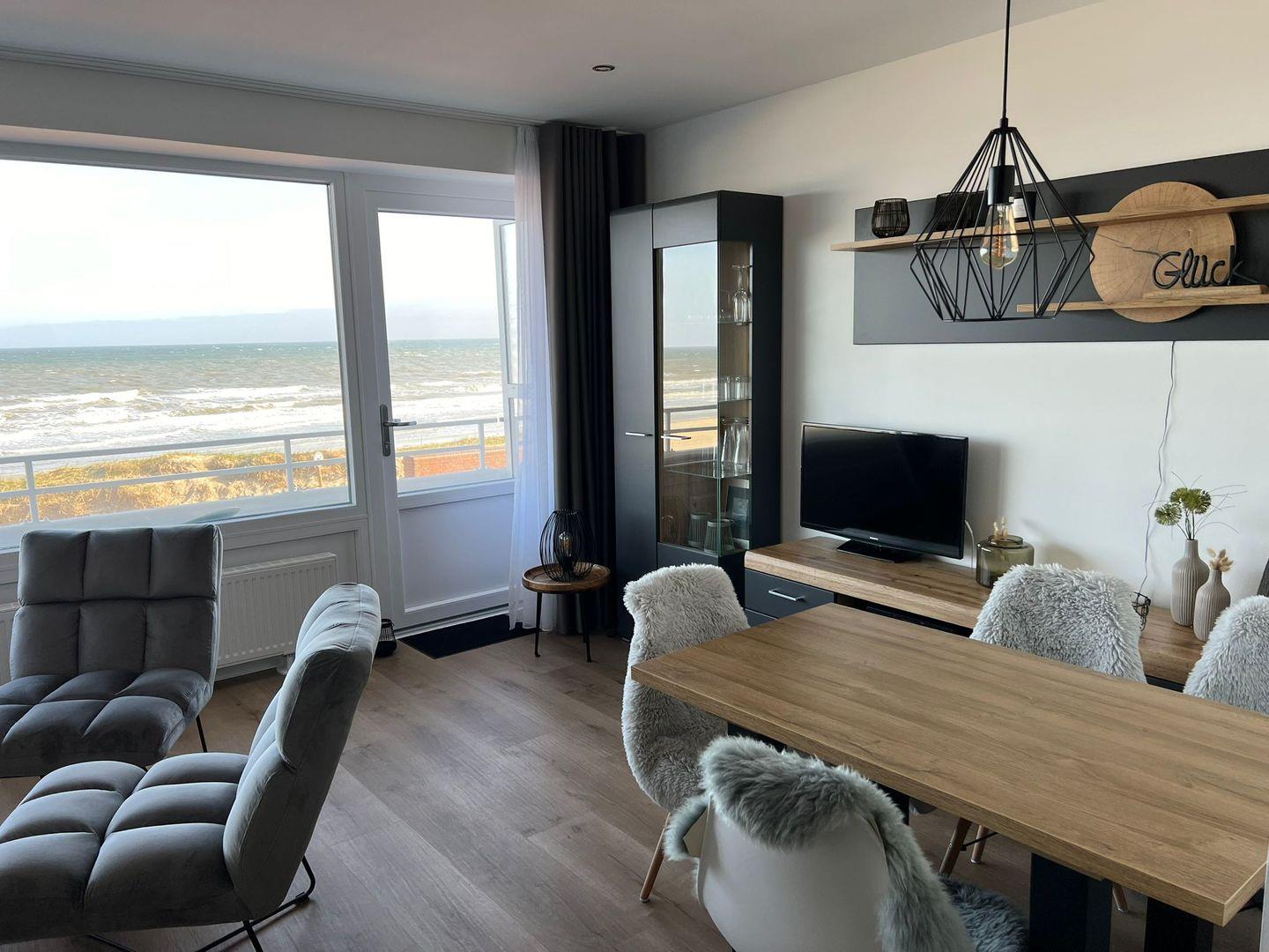 Diese neu renovierte Wohnung in erster Strandlage ist stylisch eingerichtet mit Wohlfühlfaktor. Aus jeder Ecke des Wohn-Essbereich kann man den Blick aufs Meer schweifen lassen. Die Wohnung verfügt über ein hochwertiges Schrankbett, ein Badezimmer mit Dusche und gemütlichem Wohn- Essbereich