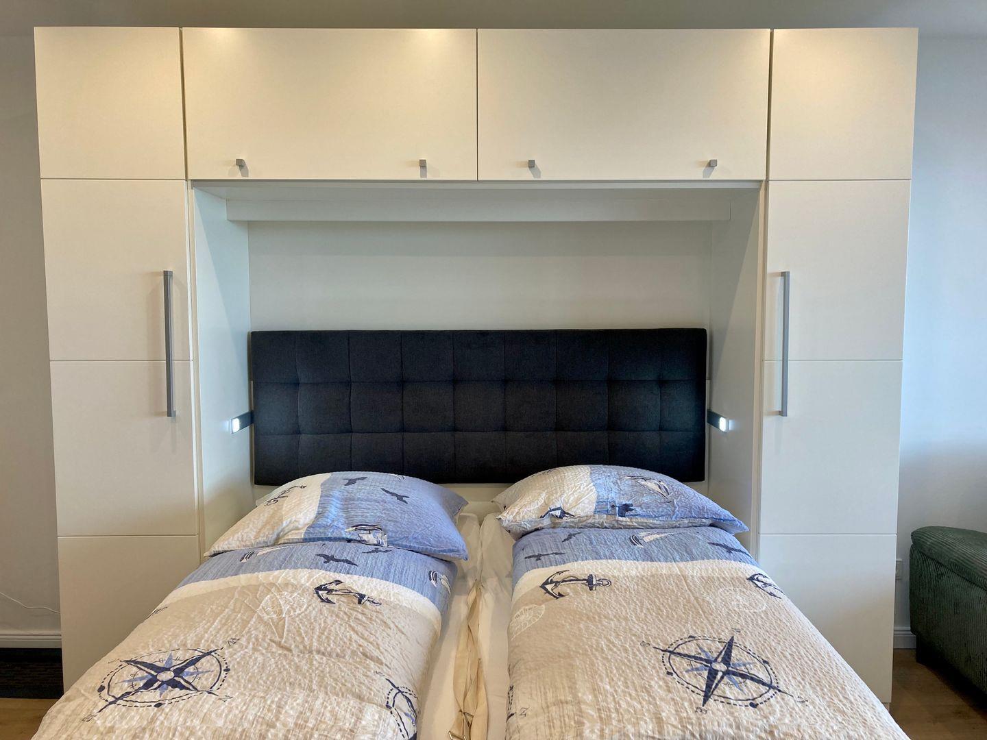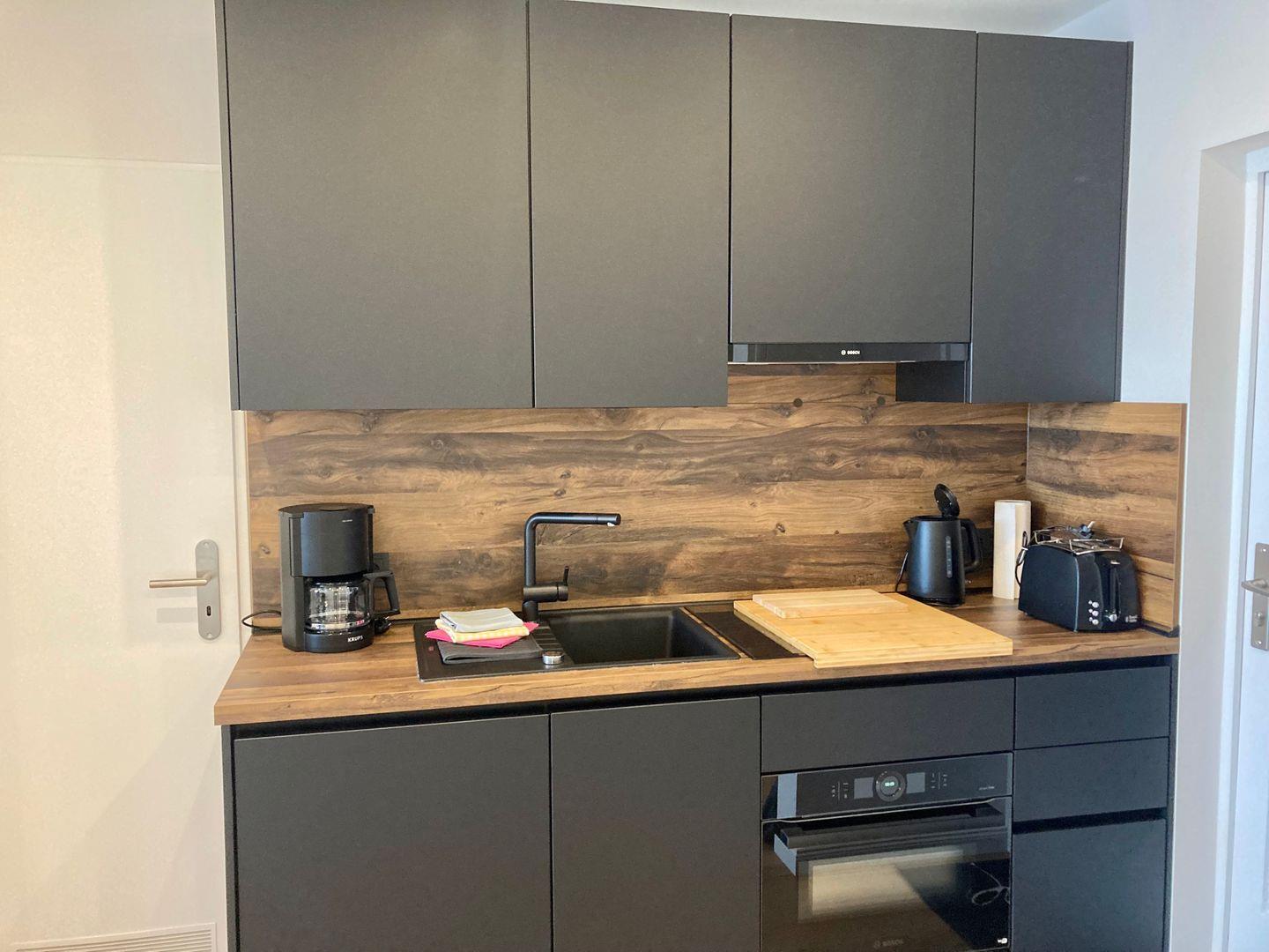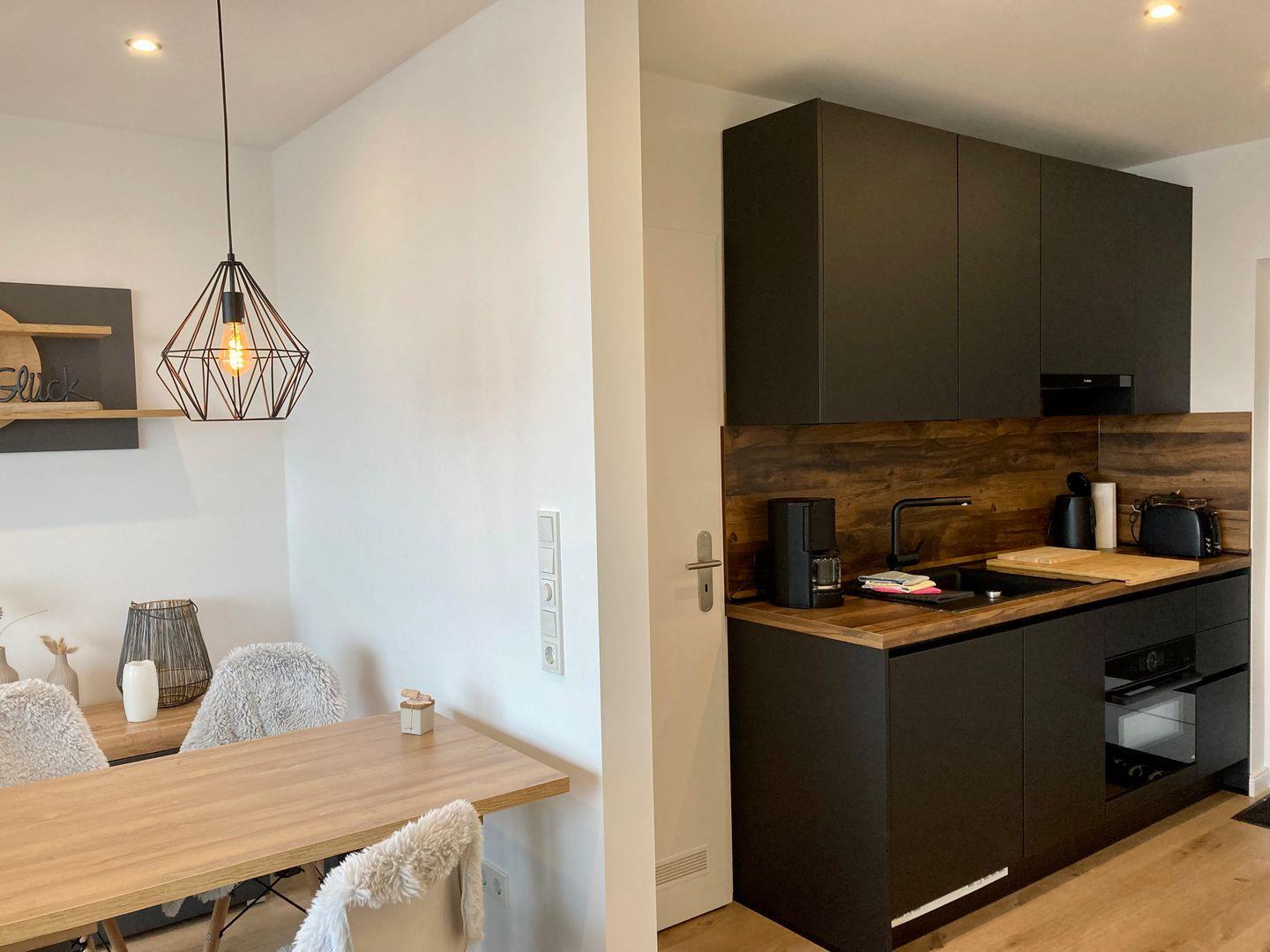 Die Küche verfügt über alles, was man für eine bequeme Selbstverpflegung benötigt und grenzt direkt an den gemütlichen Wohn-Essbereich an. Gegenüber der Küche befindet sich das hochwertige Schrankbett mit einer ordentlichen durchgezogenen Matratze!