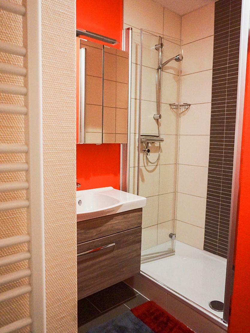 Ein modernes Bad mit großer Dusche gehört auch zur Wohnung