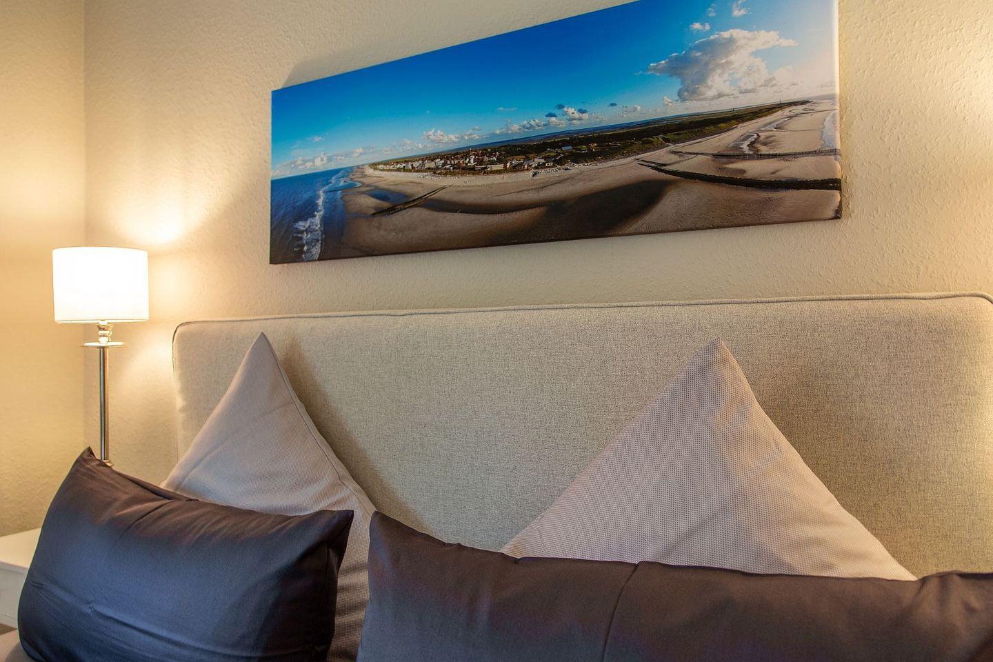 Zur Ruhe bettet ihr euch in dem gemütlichen Doppelbett im separaten Schlafzimmer oder zieht in dieses zum lesen zurück.