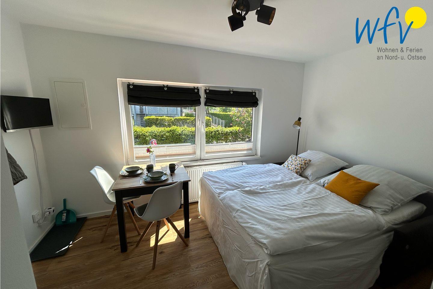 Dank der durchdachten Raumaufteilung in einen Wohnraum mit integrierter Küchenzeile (13 m²), ein separates Schlafzimmer (12 m²) und ein Duschbad (3 m²) ist die Wohnung perfekt für Paare oder kleine Familien. Frische Nordseeluft und Morgensonne tanken Sie auf der hübsch möblierten Terrasse.
