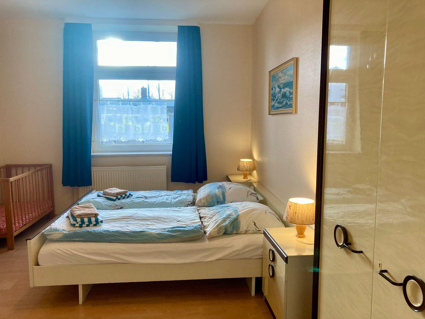 Das separate Schlafzimmer ist geräumig geschnitten und ist mit einem Doppelbett ausgestattet. Abgerundet wird diese Wohnung mit einem freundlichen Badezimmer