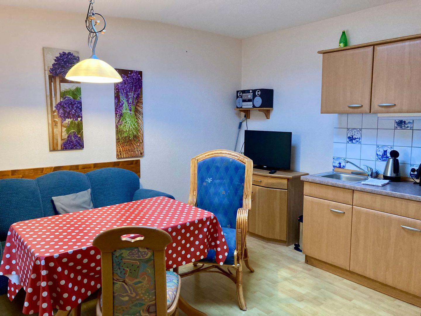 Sie besteht aus einem Wohn-Essbereich mit gemütlicher Sitzecke und einer Küche, die alles bietet, was man für eine bequeme Selbstverpflegung benötigt.