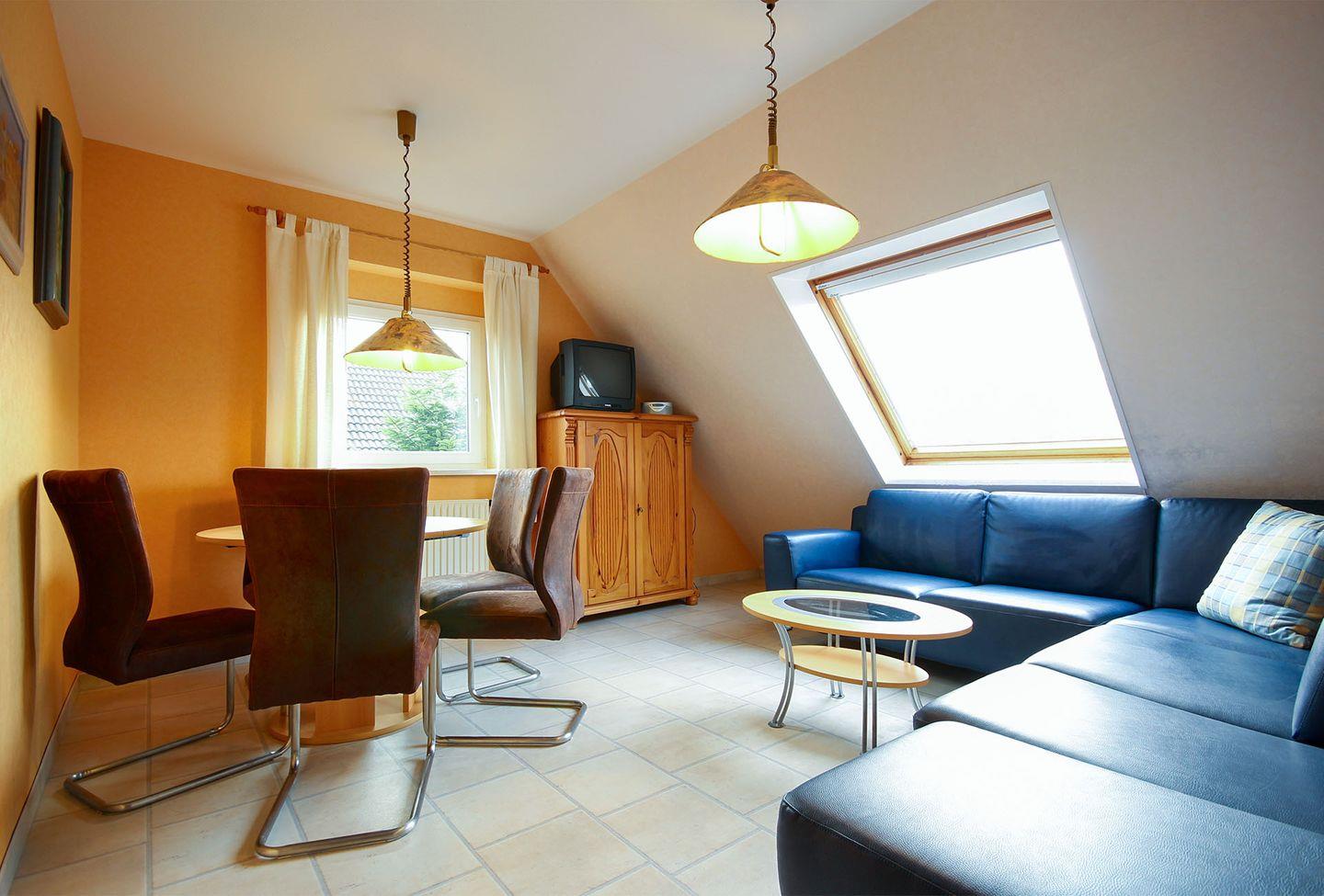 Ferienwohnung mit 3 Schlafräumen, Du/WC, Wohnraum mit Ess- und Sitzecke. Kochzeile, Geschirrspüler, Mikrowelle. TV, Radio. Kostenloser WLAN-Zugang