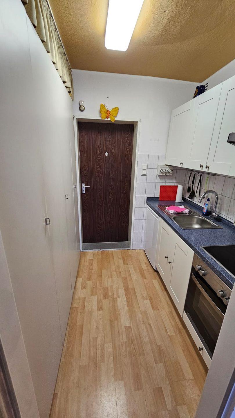 Diese Wohnung bietet alles, was man für den Urlaub benötigt. Eine voll ausgestattete Küche, ein Badezimmer mit Dusche und einen geräumigen Balkon mit Meerblick.