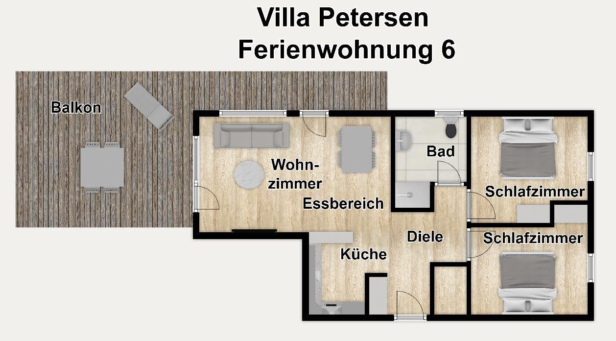 Genießen Sie auf Wangerooge herrlich entspannte Urlaubstage in der "Villa Petersen" - in zweiter Reihe zum Strand. Unsere exquisit ausgestattete Ferienwohnung 6 verwöhnt Sie mit luxuriösem Wohnkomfort und wunderbaren Wohlfühlmomenten!
