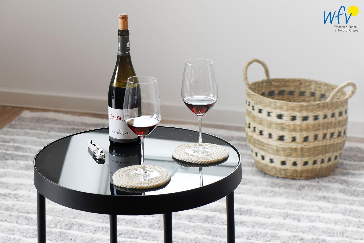 Nach dem Strandtag oder der Fahrradtour lädt der Wohnraum mit Couch, Relaxsessel und modernem TV zu entspannten Stunden ein. An dem großen Esstisch haben Sie viel Platz für gemeinsame Mahlzeiten oder lustige Spieleabende.