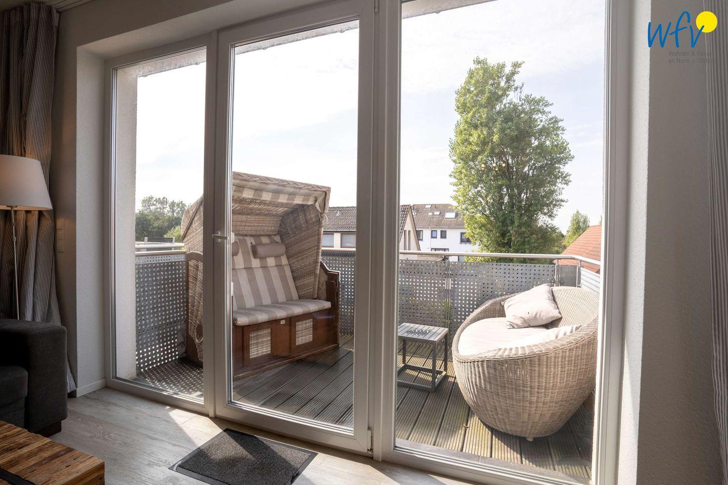 Frische Nordseeluft buchen Sie bei uns inklusive! Auf dem möblierten West-Balkon mit gemütlichem Strandkorb und Loungesofa können Sie sich wunderbar erholen, ausspannen und das Urlaubsgefühl genießen.
