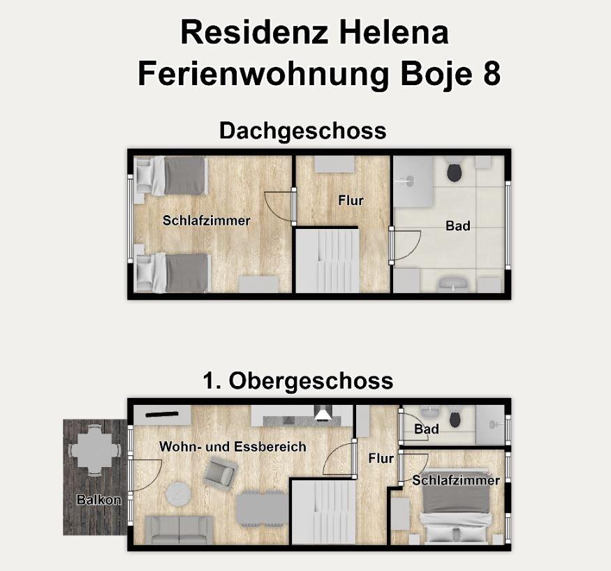 Herzlich willkommen in der "Residenz Helena". Mit zwei separaten Schlafzimmern, Balkon und eigener Sauna ist unsere "Ferienwohnung Boje 8" perfekt für einen erholsamen Urlaub auf Wangerooge!