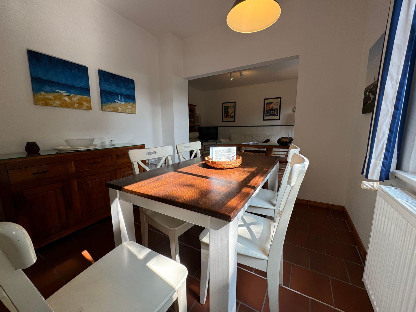 Die Einrichtung der "Kombüse" spiegelt die traditionelle friesische Kultur wider und schafft eine warme, einladende Atmosphäre. Helle Farben, maritime Akzente und hochwertige Holzmöbel verleihen der Wohnung einen unverwechselbaren Charme.