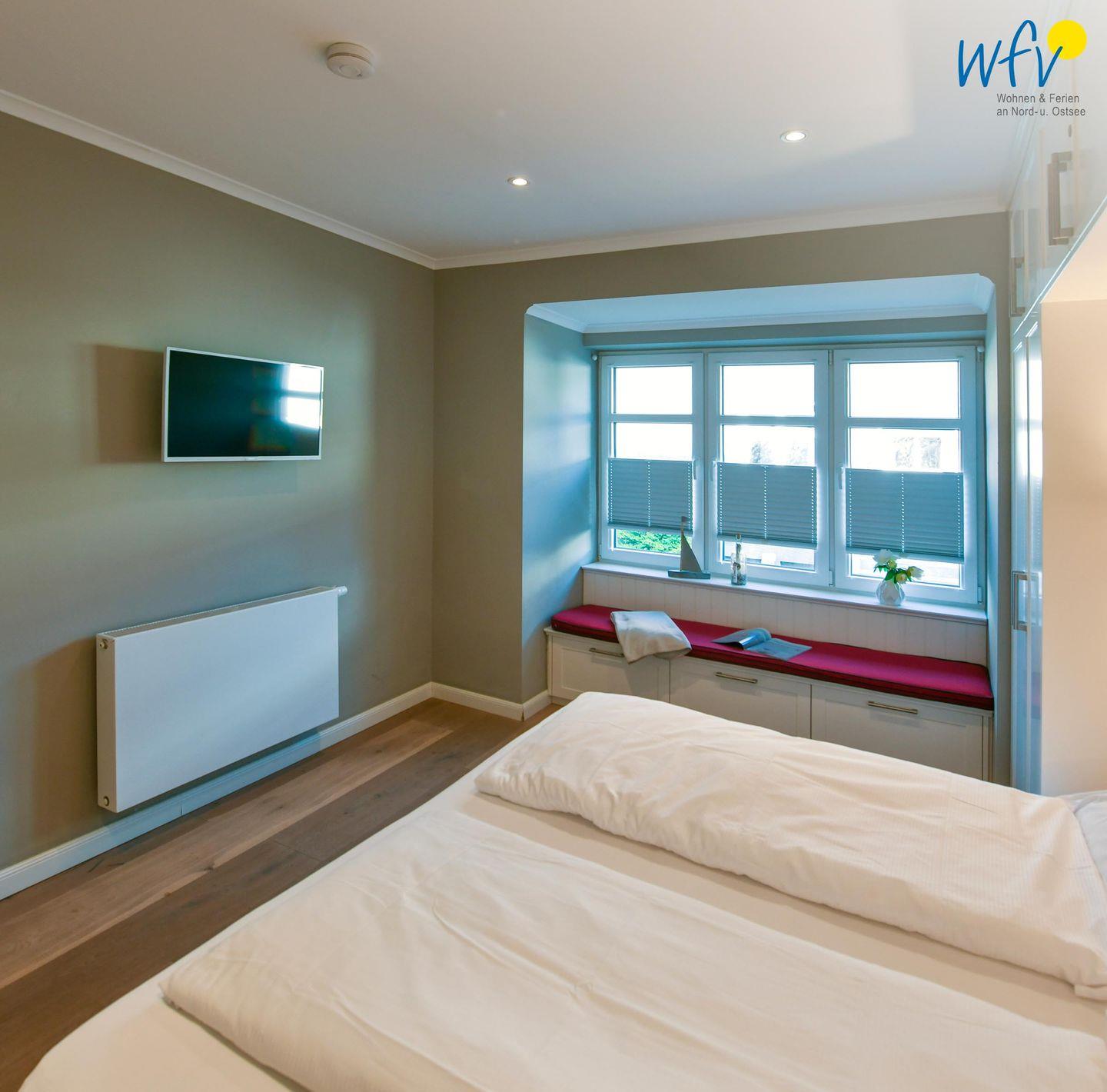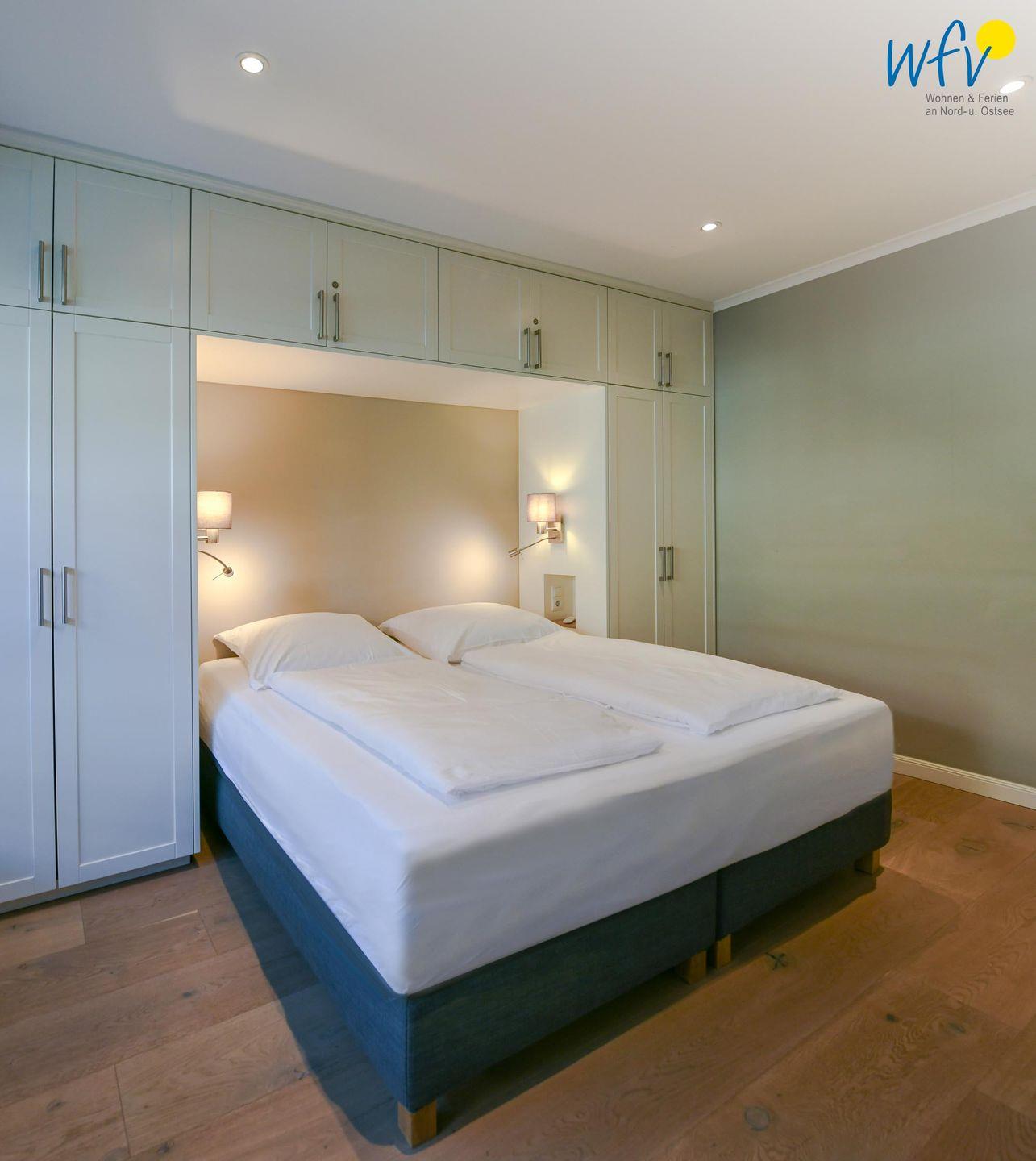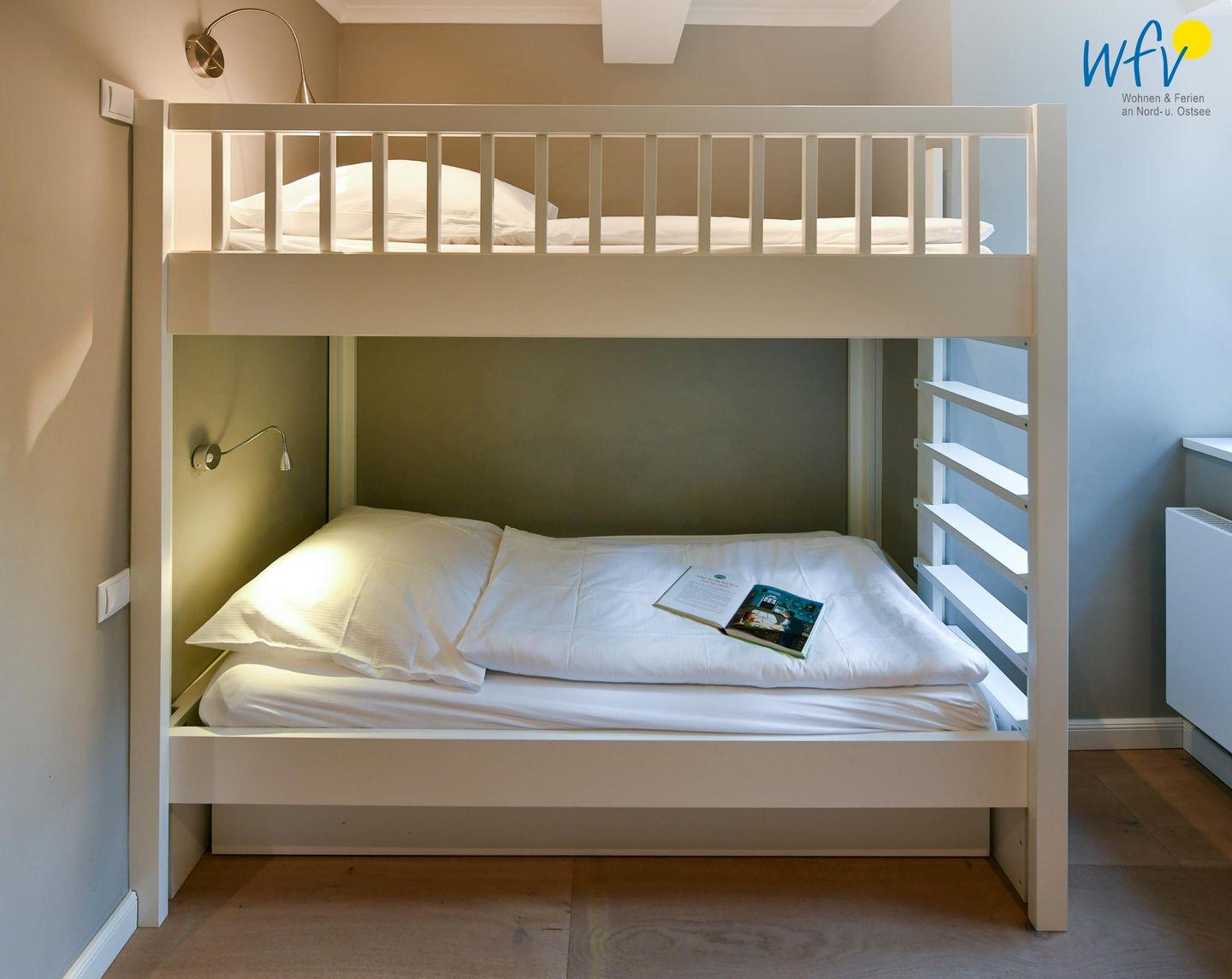 Zwei separate Schlafzimmer bieten Ihnen angenehme Rückzugsmöglichkeiten. Im Elternschlafzimmer befindet sich ein komfortables Boxspringbett (180 x 200 cm), das Kinderzimmer ist für unsere kleinen Gäste mit einem Etagenbett (je 90 x 200 cm) und einem Kinderspieltisch eingerichtet.