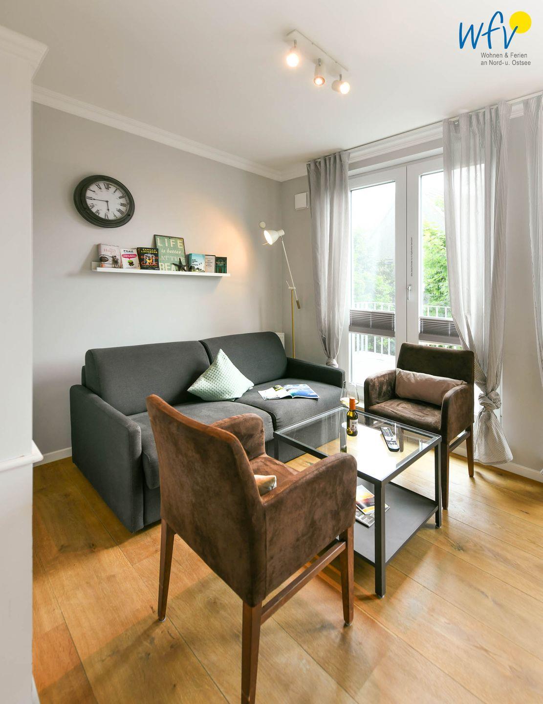 Nach dem Strandtag oder der Fahrradtour lädt eine gemütliche Sitzecke mit TV, HiFi-Anlage und einigen Büchern zu entspannten Stunden ein. Zum Surfen vom Smartphone aus steht Ihnen kostenlos freies WLAN zur Verfügung.