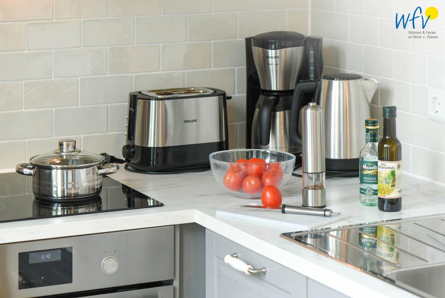 Für eine bequeme Selbstverpflegung ist die Küchenzeile komplett ausgestattet - u.a. mit einem Ceranherd, einem Backofen, einer Mikrowelle und einer Spülmaschine. Oder Sie lassen sich kulinarisch verwöhnen: Innerhalb weniger Gehminuten erreichen Sie den Ortskern mit Restaurants, die Ihnen köstliche Gerichte der Nordseeküche servieren - auf der Promenade sogar mit Meerblick.