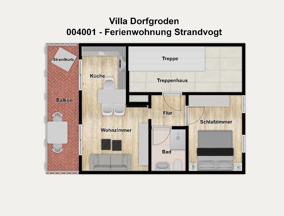 Die Villa Dorfgroden Ferienwohnung Strandvogt ist der perfekte Rückzugsort für Paare, die eine Kombination aus Gemütlichkeit und Komfort suchen. Mit 42 m² bietet die Wohnung Platz für zwei Personen und verfügt über ein separates Schlafzimmer sowie ein modernes Badezimmer. Genießen Sie Entspannung im offenen Wohnraum mit Küche und gemütlicher Couchecke. Erholen Sie sich auf dem Balkon mit eigenem Strandkorb. WLAN, HiFi-Anlage und die kinderfreundliche Ausstattung runden das Angebot ab.