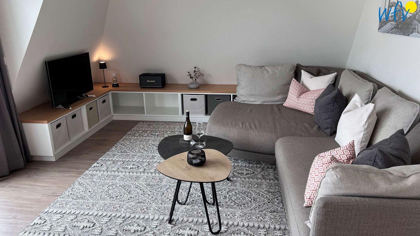 Der helle Lichteinfall, stilvolle Möbel in harmonischer Farbgebung und maritime Accessoires sorgen für schönes Flair und das entsprechende Nordseegefühl. Eine Fußbodenheizung bietet zusätzlichen Wohnkomfort und wohlige Wärme. Der Essplatz mit schönem Blick ins Grüne lädt zum ausgiebigen Ferienfrühstück ein, die Couchecke mit modernem TV und HiFi-Anlage zu gemütlichen Stunden zum Entspannen und die komfortablen Betten in den separaten Schlafzimmern zum langen Ausschlafen.