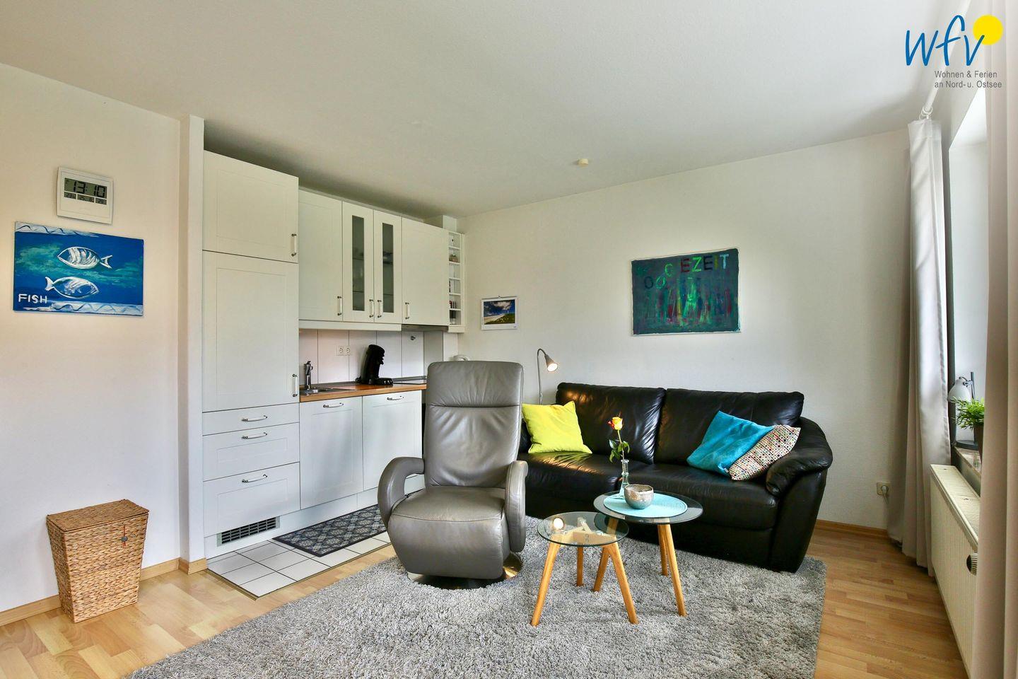 Zum Wohlfühlen lädt auch der gemütliche Wohnraum mit Couch und Relaxsessel sowie TV, DVD-Player und Radio ein. In der integrierten voll ausgestatteten Küchenzeile - u.a. mit Ceranherd, Backofen und Spülmaschine - lassen sich schnell und einfach leckere Mahlzeiten zubereiten. Diese können Sie in Ruhe im Essbereich mit ausziehbarem Esstisch einnehmen. Oder Sie dinieren bei wohltuender Nordseeluft: auf dem Balkon laden bequeme Gartenmöbel mit Auflage zum Verweilen ein.
