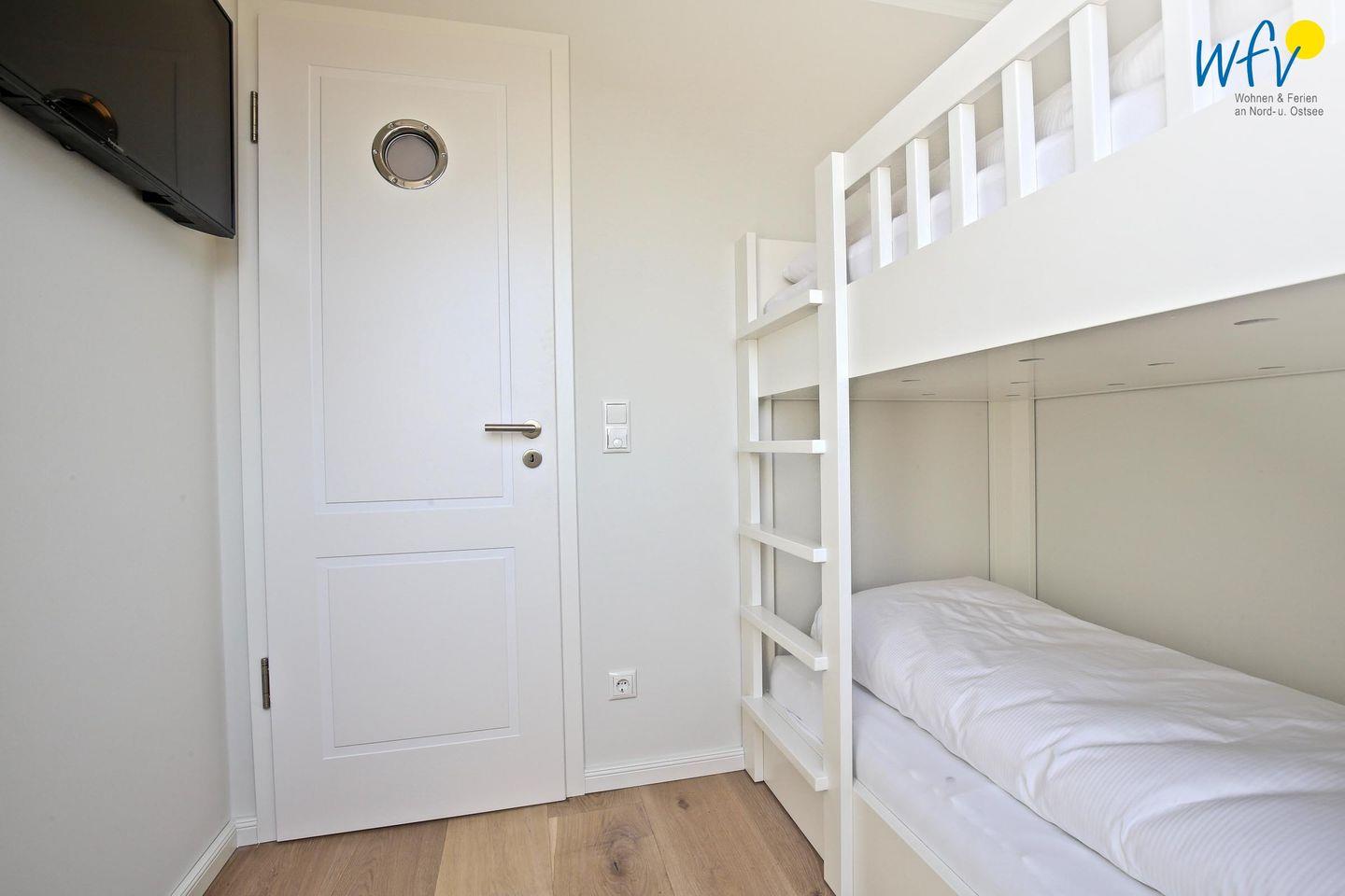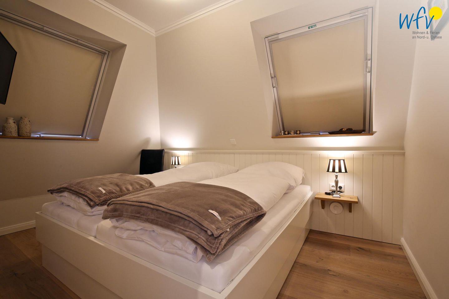In der oberen Etage bieten Ihnen drei separate Schlafzimmer angenehme Rückzugsmöglichkeiten. Die Elternschlafzimmer sind jeweils mit einem komfortablen Doppelbett ausgestattet, das Kinderzimmer mit einem Etagenbett. Ihre Urlaubsgarderobe findet in den geräumigen Kleiderschränken Platz. Weiterer Komfort besteht durch ein TV in einem der Elternschlafzimmer sowie durch Kinderspielzeug für unsere kleinen Gäste. Vom Dachfenster aus können Sie bereits die Nordsee sehen!