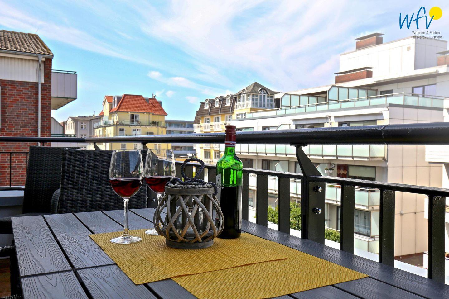 Frische Nordseeluft genießen Sie auf dem hübsch möblierten Balkon mit schönem Blick in die Umgebung. Hier den Tag mit einem gemütlichen Ferienfrühstück zu begrüßen, die Inselatmosphäre zu erleben oder in Ruhe ein gutes Buch zu lesen ist ein wunderbares Urlaubsgefühl!