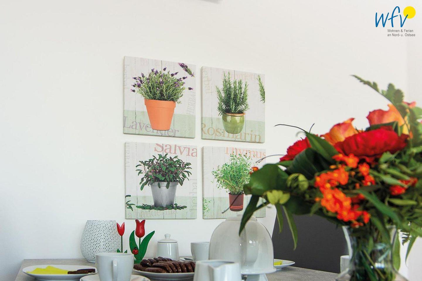 Die gut ausgestattete Küchenzeile - u.a. mit 4-Platten-Herd, Backofen und Mikrowelle - ermöglicht Ihnen eine bequeme Selbstverpflegung. Auch aus diesem Zimmer können Sie bereits die Nordsee sehen!