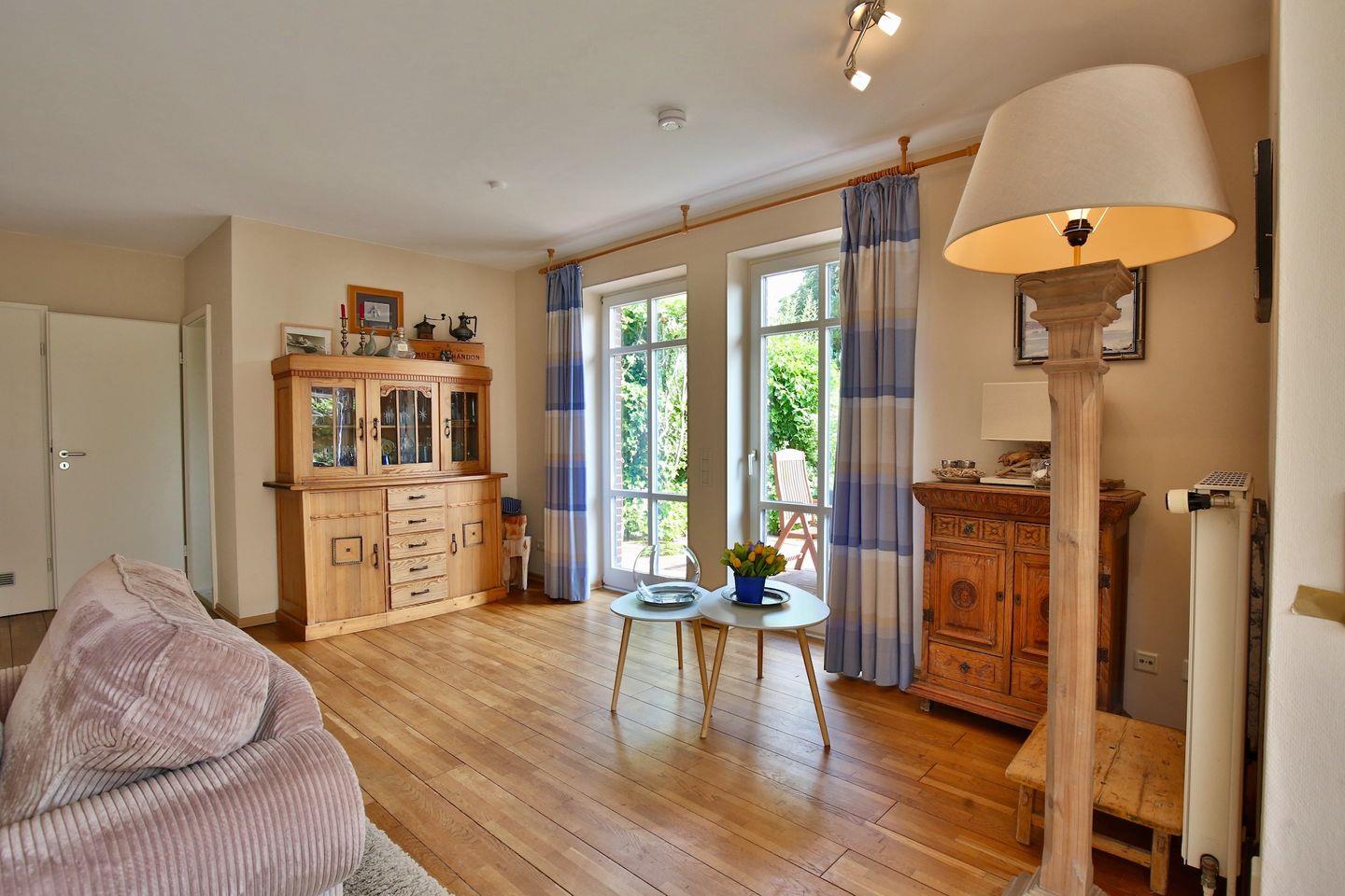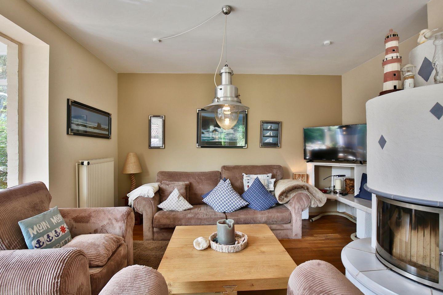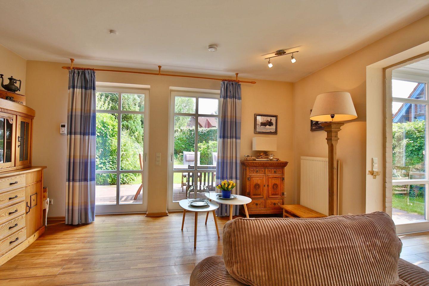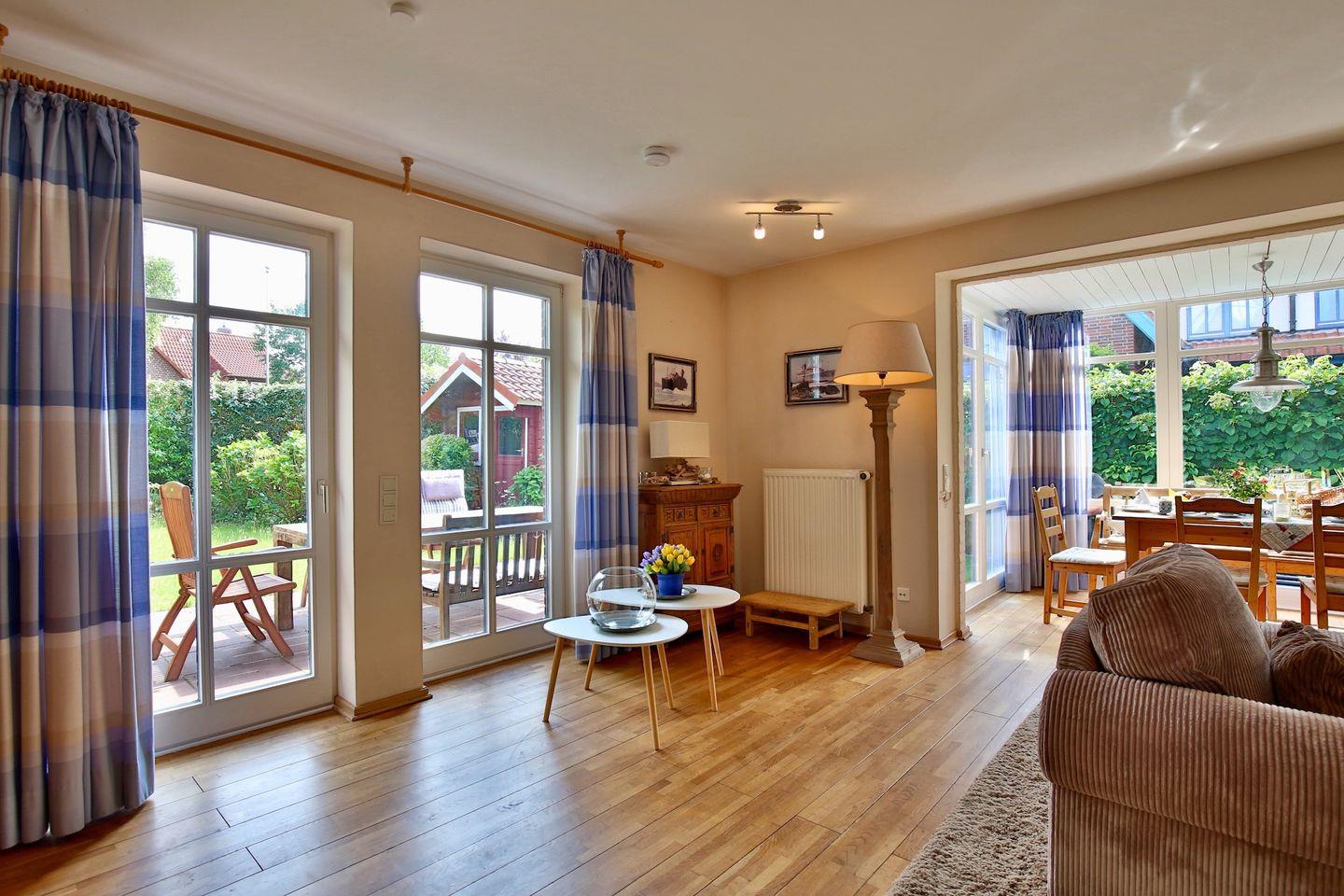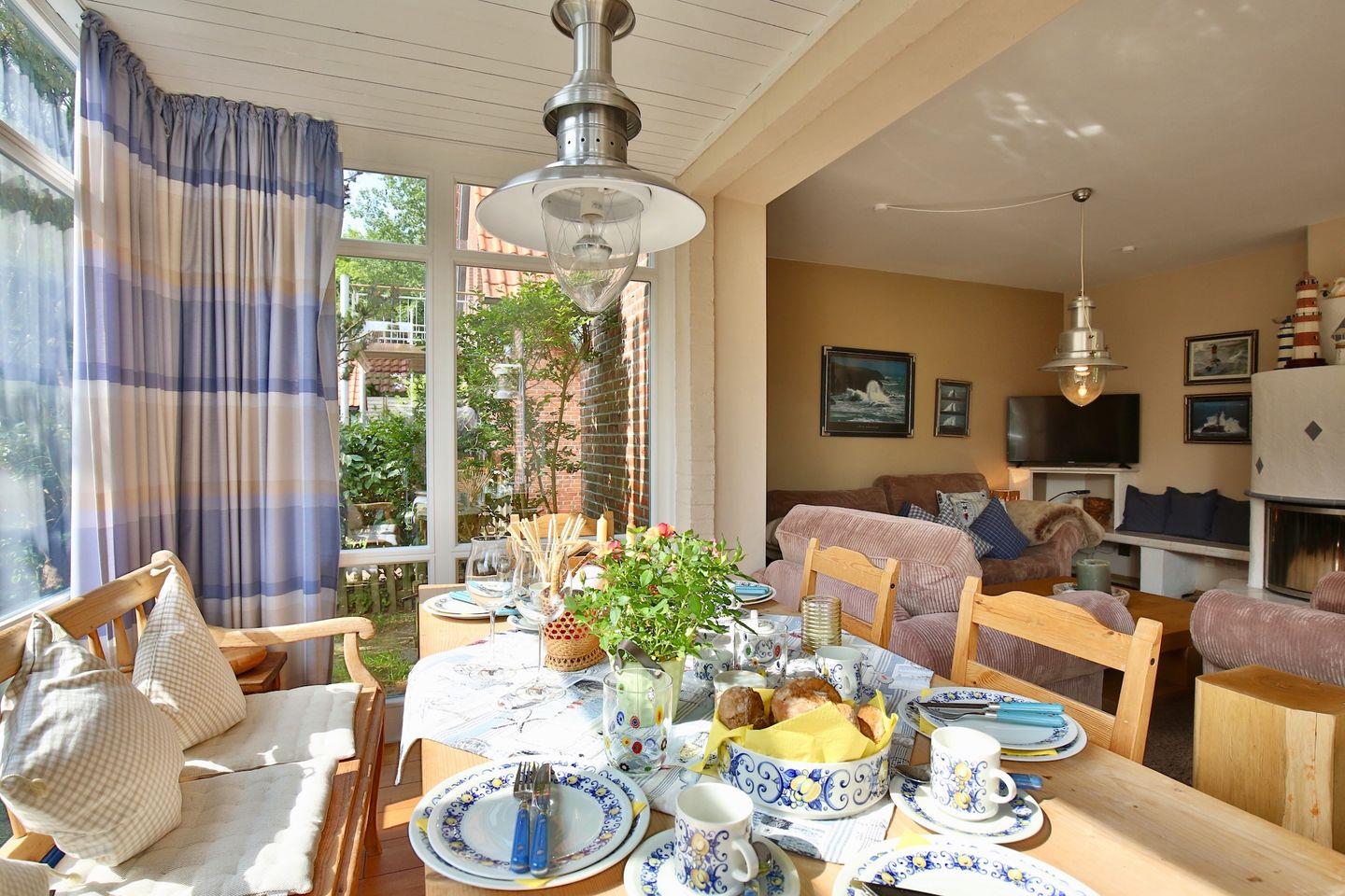 Der Wintergarten mit Essecke, der gemütlichen Wohnbereich, das helle Bad mit Badewanne, die Küche und der Garten erlauben Erholung pur. Das Haus befindet sich in einer ruhigen Sackgasse; innerhalb von wenigen Gehminuten ist man aber auch im Dorf und an dem herrlichen Sandstrand
