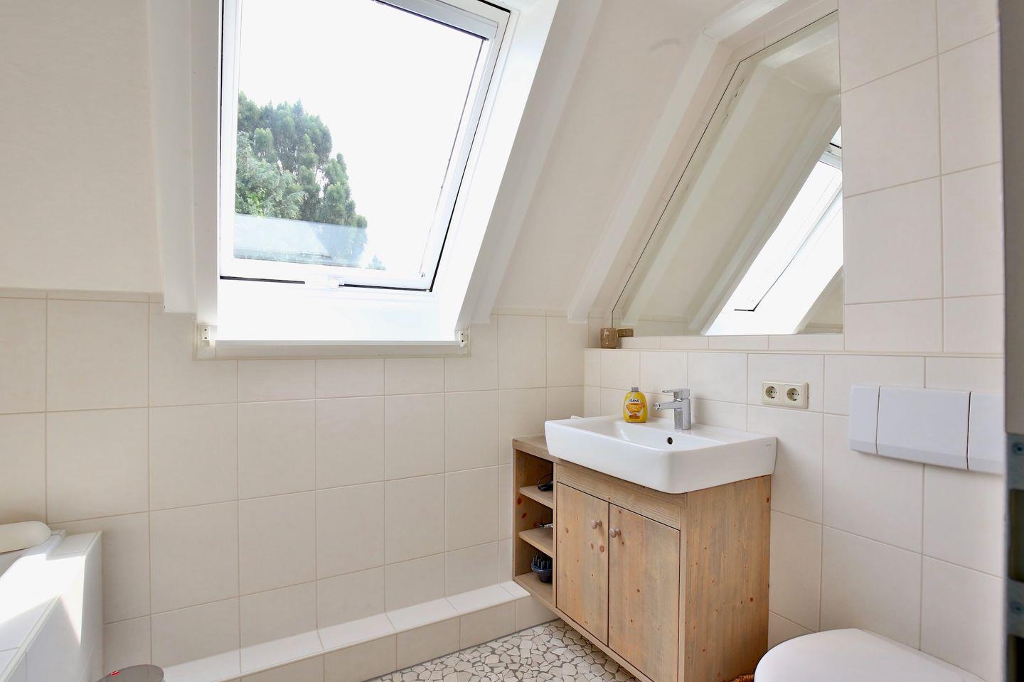 Das helle Tageslichtbad mit Badewanne lädt nach einem Strandtag zum Entspannen ein. Die voll ausgestattete Küche macht gemeinsames Kochen zum Vergnügen- und für Ihre Wäsche steht eine eigene Waschmaschine zur Verfügung. WLAN ist im gesamten Haus verfügbar und sorgt dafür, dass Sie auch im Urlaub vernetzt bleiben können.